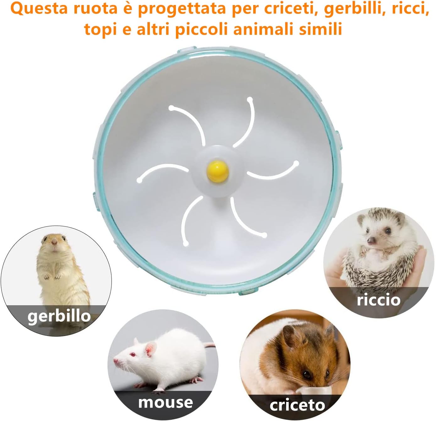 • МНОГОФУНКЦИОНАЛНО Колелото за бягане за хамстери е предназначено за хамстери, джербили, таралежи, мишки и други подобни малки животни. Подходящо за малки и средни домашни любимци. То е идеалният избор за чинчили, плъхове или други малки животни и предлага на малките домашни любимци безопасно място, където могат да се забавляват и да се забавляват.