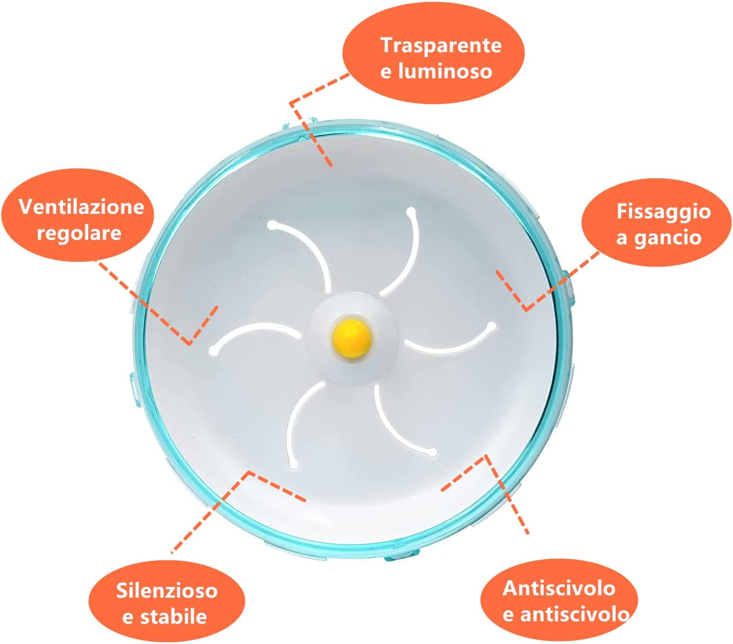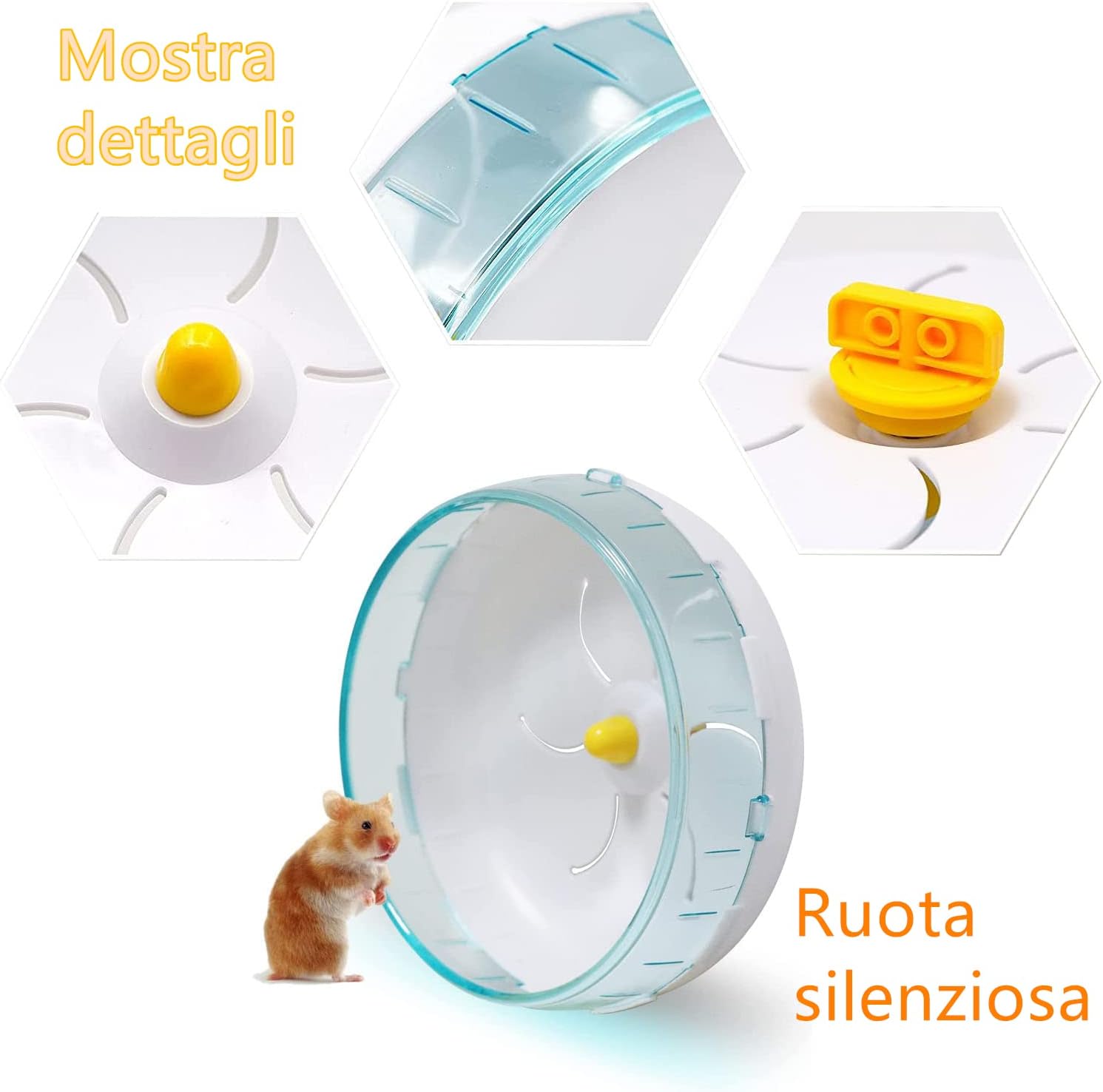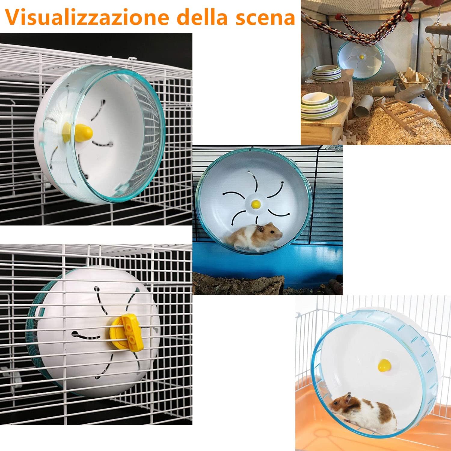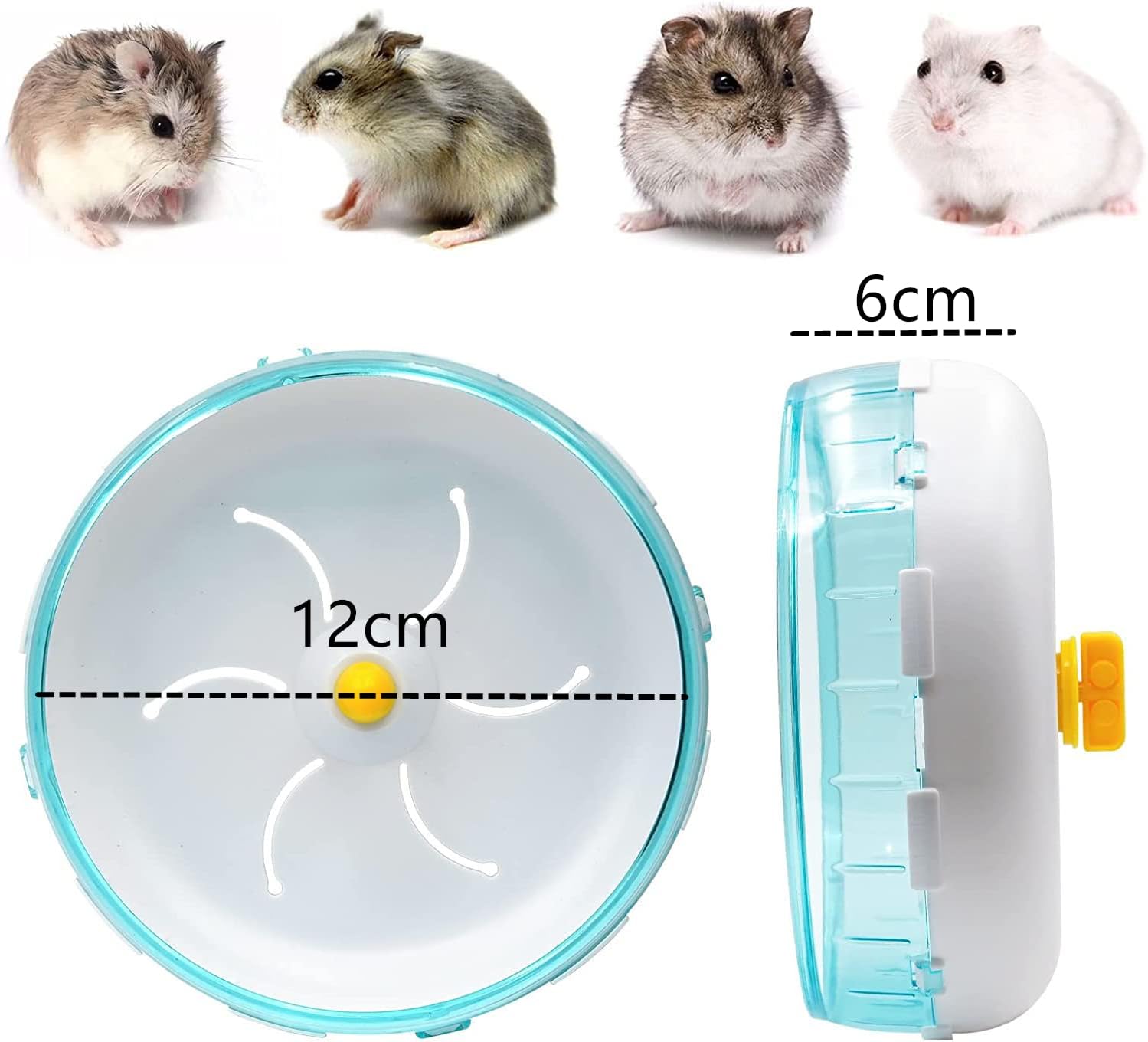 • Висококачествен материал: 12 x 12 x 6 см. Безшумно колело за хамстер, изработено от пластмасово колело + стоманен лагер, то е екологично и нетоксично, без мирис и устойчиво на износване, здраво и издръжливо. Можете да наблюдавате различните пози на вашия хамстер, докато тича, и ще се забавлявате много.