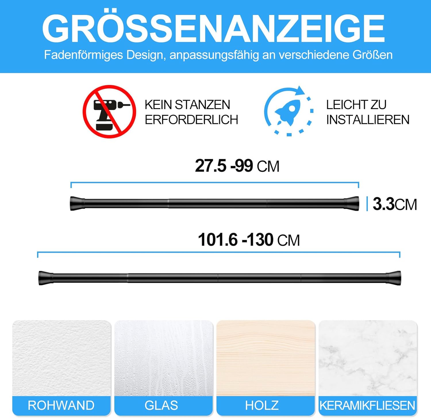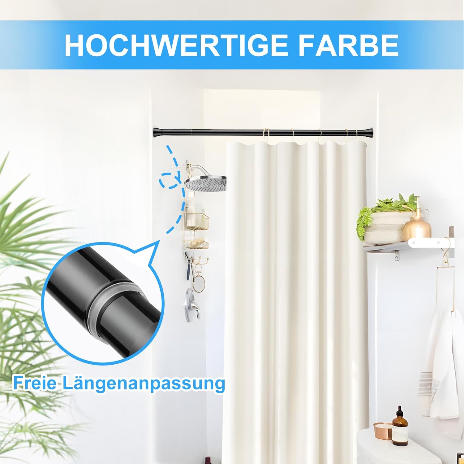 1 бр. Корниза за завеси, без пробиване, 70-127 см, телескопична релса за завеси за душ, регулируема опъваща щанга за баня, прозорец, кухня, шкаф, черна