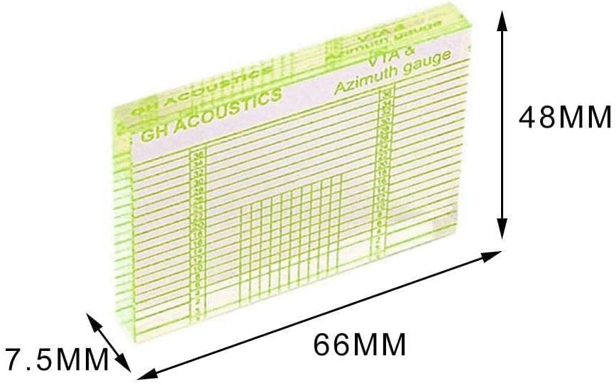 Прост метод за регулиране на азимута на картриджа: преместете картриджа до средата на плочата, спуснете рамото и пуснете писалката върху плочата. Поставете регулиращата линийка пред картриджа, за да видите дали картриджът е подравнен с вертикалната линия в средата на решетката и дали външният контур на картриджа е подравнен с линията на решетката (за картридж с неправилен контур той е подравнен с линията на решетката и пропорциите са еднакви).