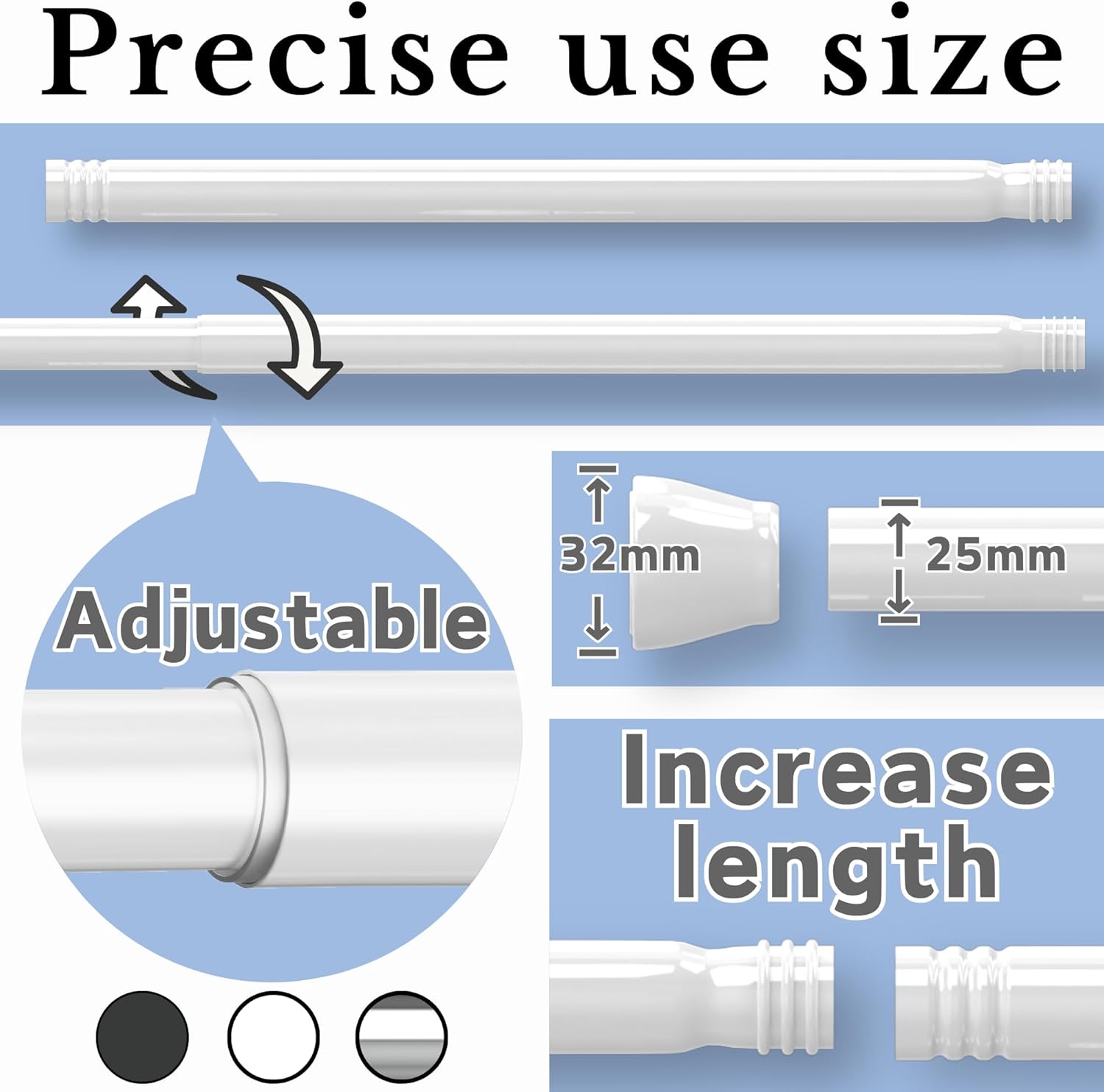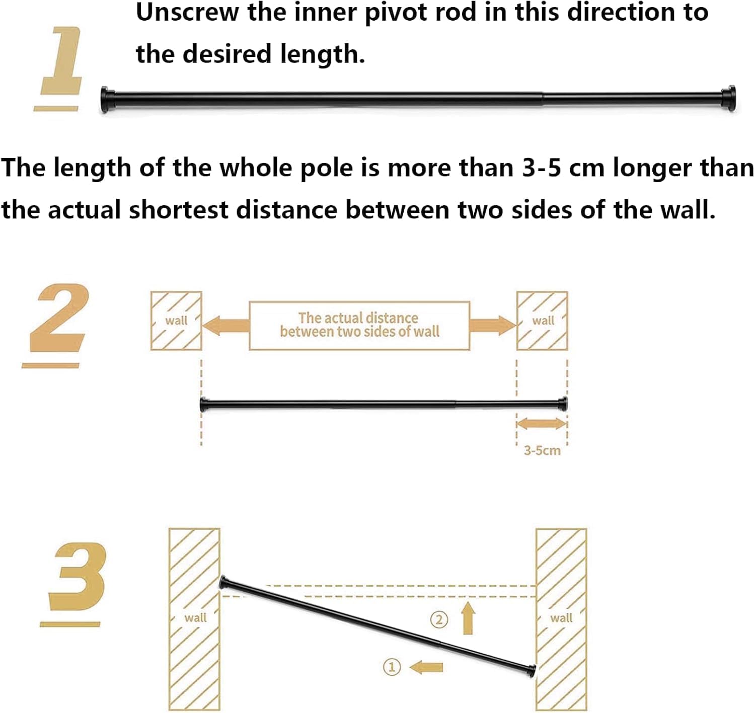 • Лесен монтаж: може да се използва между рамки на прозорци или врати. Не са необходими винтове или отвори по време на монтажа. Може да се фиксира чрез разхлабване до желаната дължина и използване на неплъзгащите се крайни части. Може да се разглоби без да оставя следи чрез леко завъртане. Разширителната щанга няма да повреди стената или други повърхности.