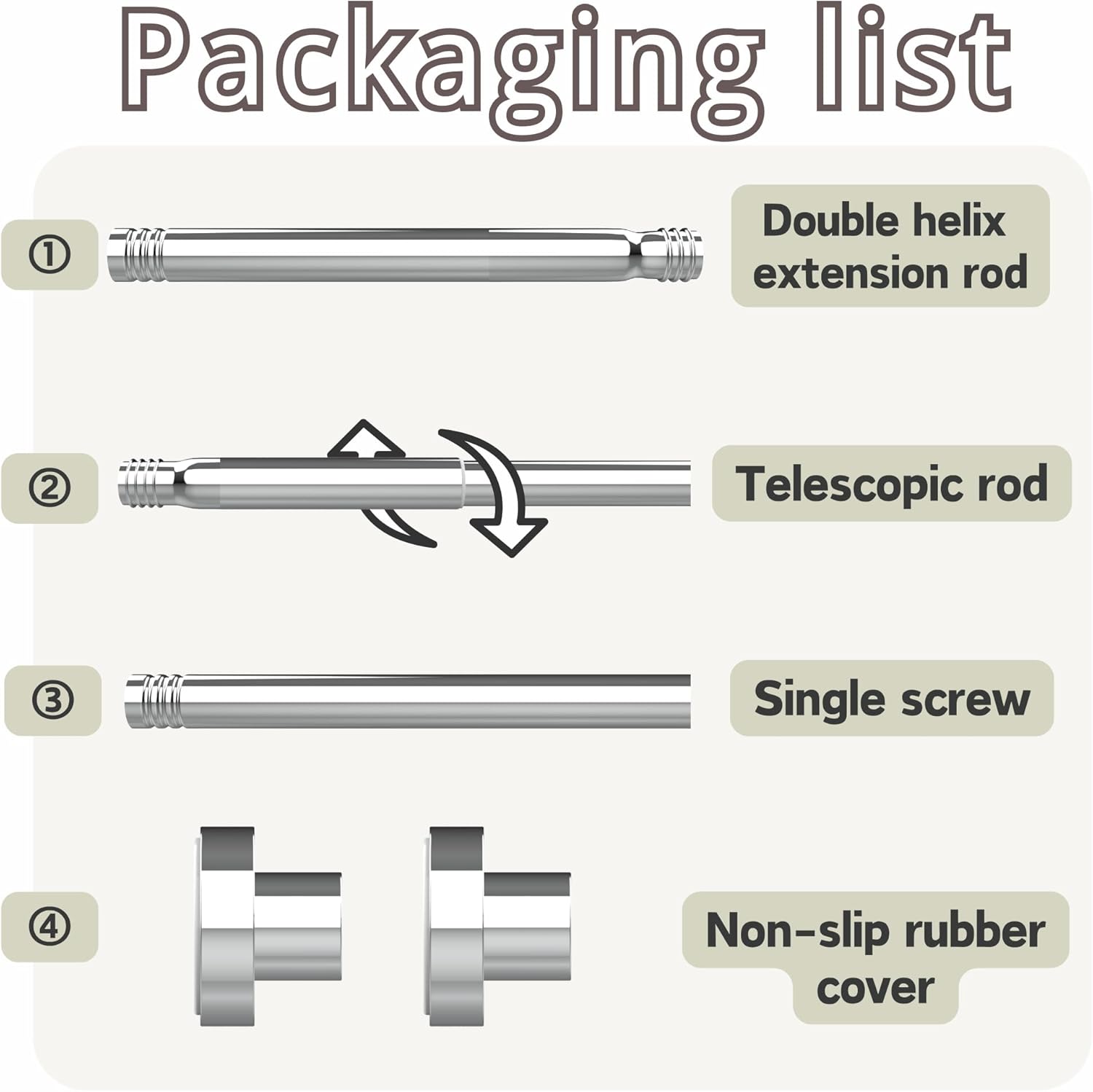 • Здрав и издръжлив: Изработен от висококачествена неръждаема стомана, той е устойчив на ръжда, корозия и издръжлив; Отличната му товароносимост прави пръта стабилен и надежден и не му позволява лесно да се хлъзга.