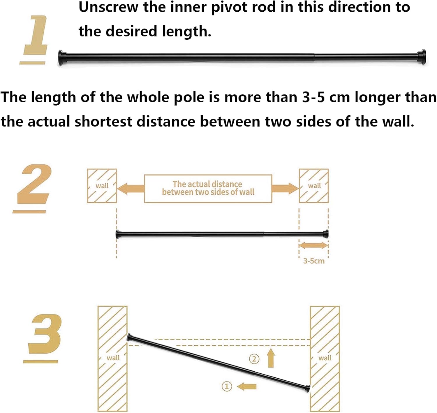 • Лесен за монтаж, универсален: Не е необходимо пробиване и монтажът е бърз благодарение на опората за натиск. Баня: Използвайте го като корниз за завеса за душ и перфектно се съчетава с различни завеси за душ, за да създадете лично и подредено пространство в банята. Спалня: Използвайте го като корниз за завеси, закачалка или корниз за съхранение, за да оптимизирате използването на пространството и да добавите повече комфорт в дома си.