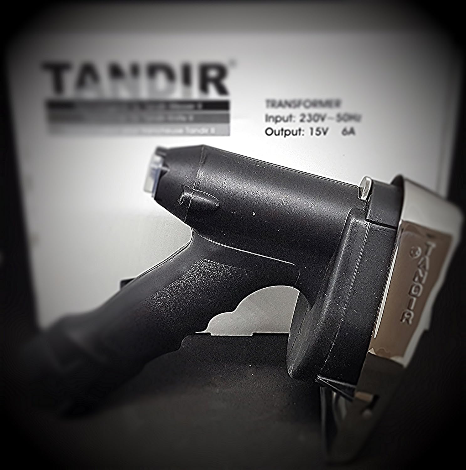 • Съдържание на кутията: нож Tandir 100, захранване: 15 V, кръгъл нож (гладък), кръгъл нож (назъбен), заточващ камък, резервен винт за острието, резервен плъзгач, предпазители 6,3 A