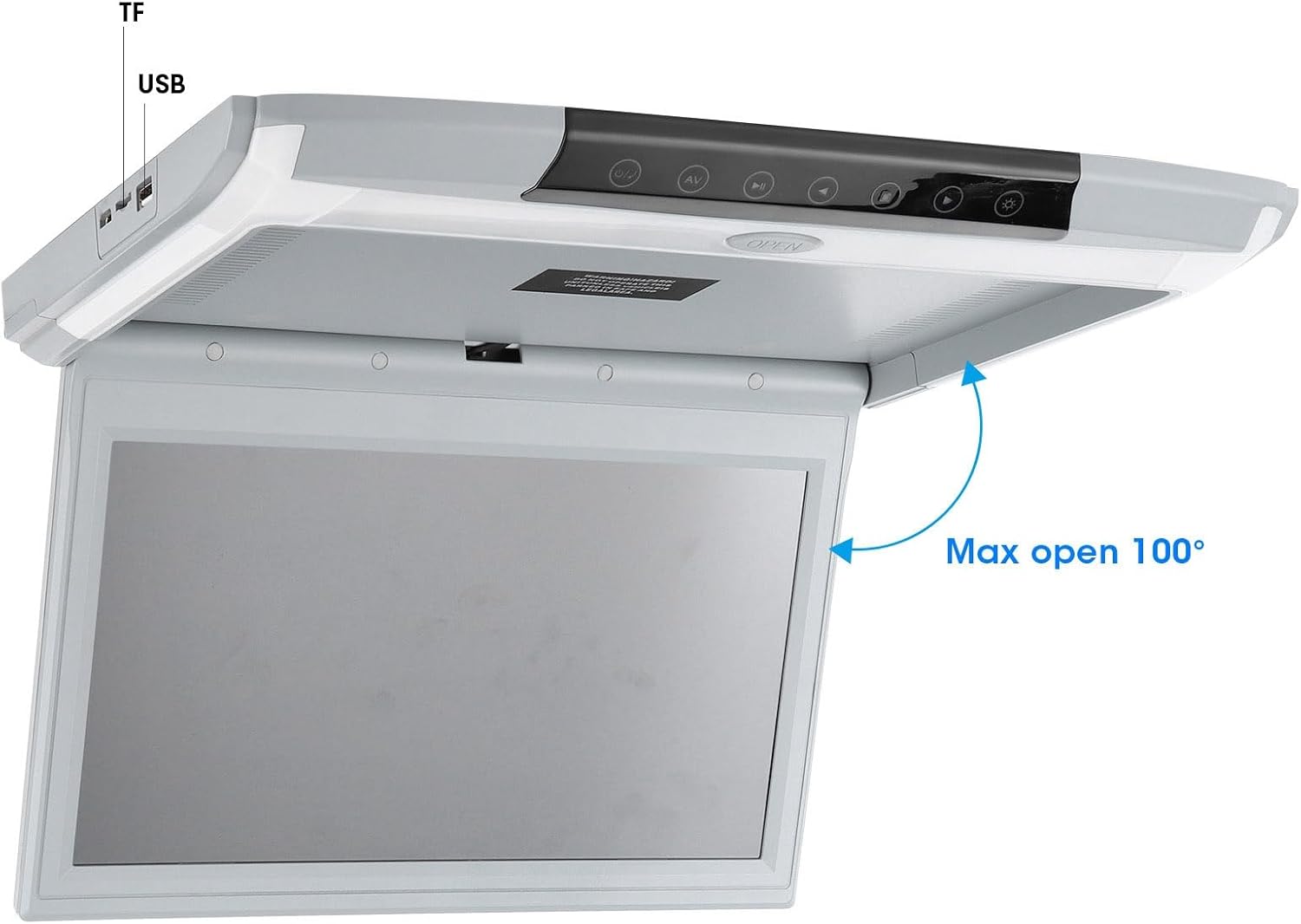 [Unterhaltung unterwegs genießen] – Mit diesem Auto-Deckenmonitor können Sie überall Video- und Audiounterhaltung genießen. für Pkw, Nutzfahrzeuge, Wohnmobile, Touristenautos, Busse und andere Modelle. Machen Sie Ihre Roadtrips unterhaltsamer und unterhaltsamer.