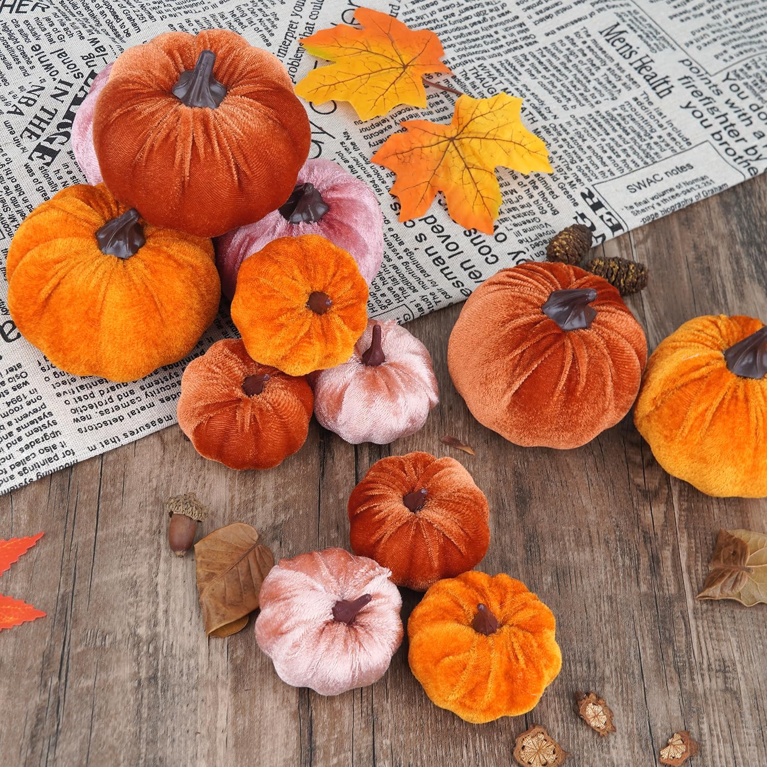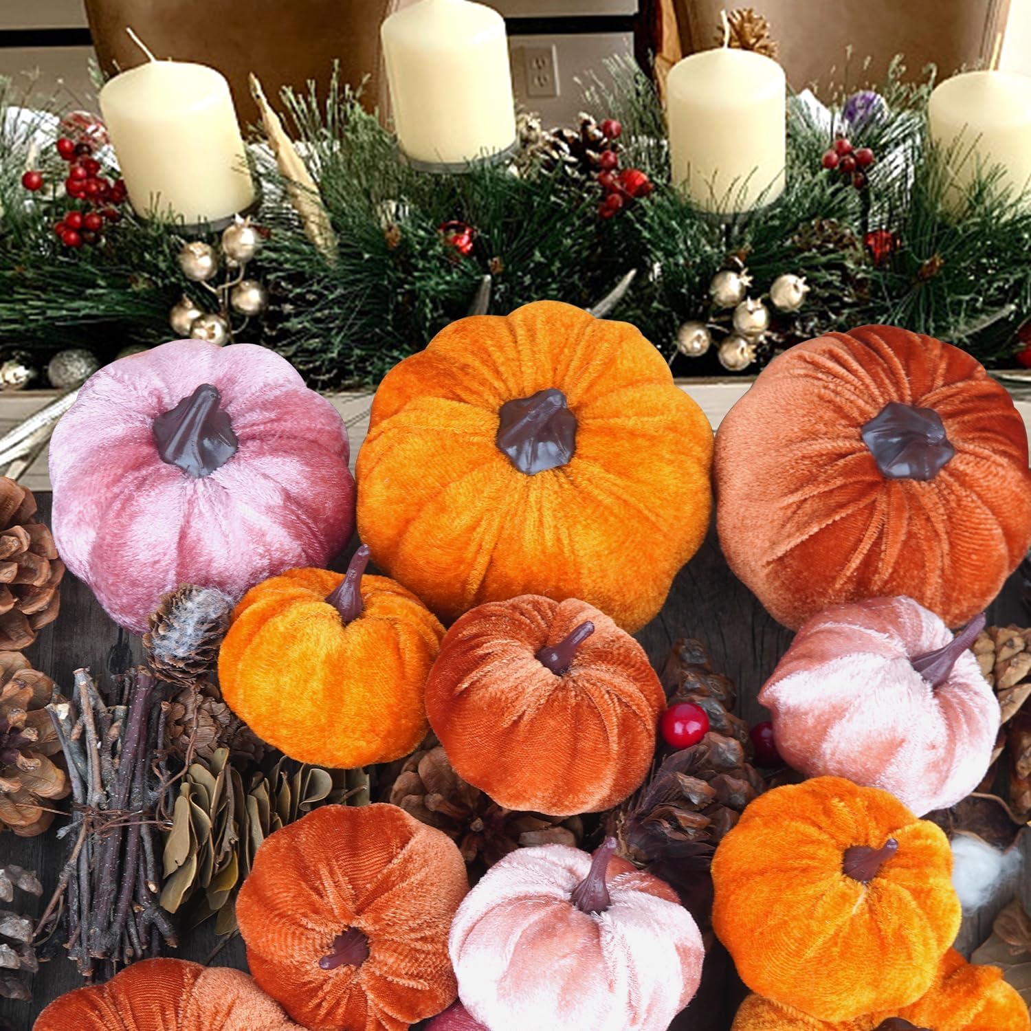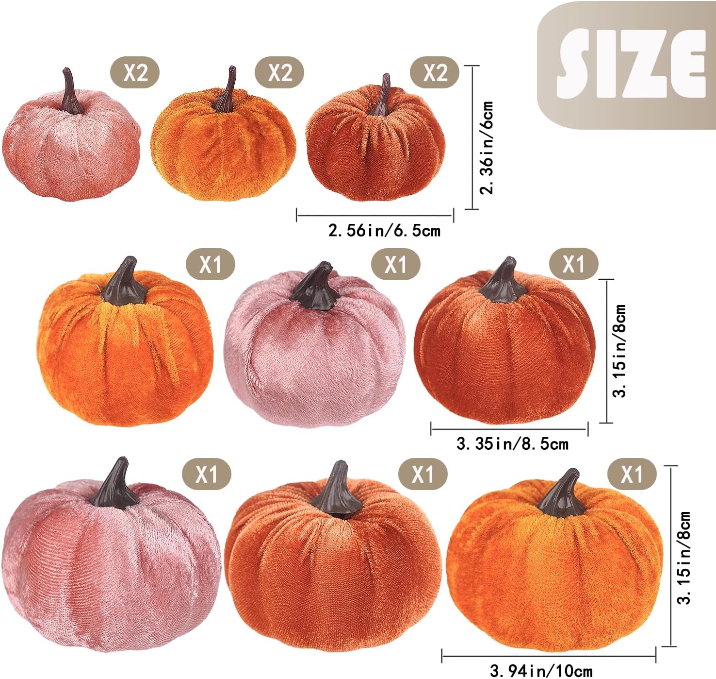 Miaikoe 12 броя изкуствени тикви в различни размери Комплект тикви за реколта от изкуствен плат Оранжево-кафява каки пяна тиква за есенна декорация за Деня на благодарността за Хелоуин 12 броя изкуствени кадифени тикви в 3 цвята и 3 размера. Нашите изкуствени пяна тикви се характеризират с класическите есенни цветове оранжево, кафяво и каки, създавайки весела атмосфера за есенната реколта и Деня на благодарността. 3 РАЗМЕРА 73 части са 10 см/3,9 инча, 3 части са 8 см/3,1 инча и 6 части са 6 см/2,4 инча, разпръснатият размер ги прави да изглеждат по-изящни. Добър материал Нашите изкуствени тикви са изработени от висококачествена пяна и са обвити в кадифена материя. Едрата текстура ги прави удобни и меки, за многократна употреба и подобряват дизайна на вашия дом и парти. Прекрасна декорация. Подходящи за есен, есенна реколта, Деня на благодарността, Хелоуин, сватба, рожден ден и други специални дни, големи централни декорации за маса и могат да се използват и като реквизит за снимки, за да добавят повече забавление към вашето парти.