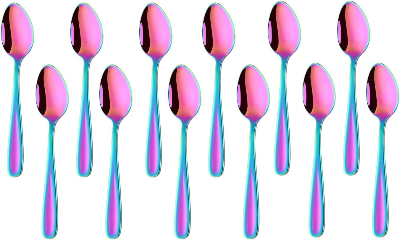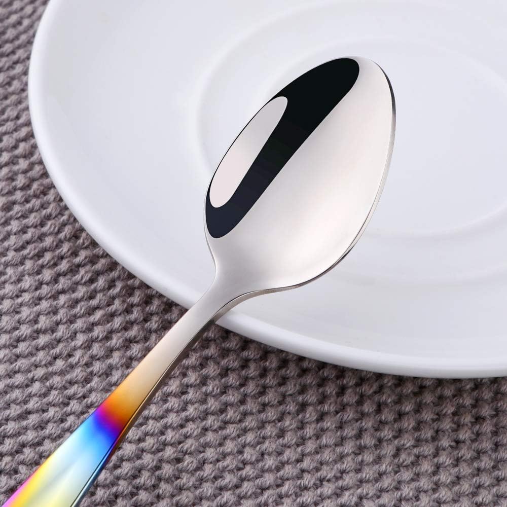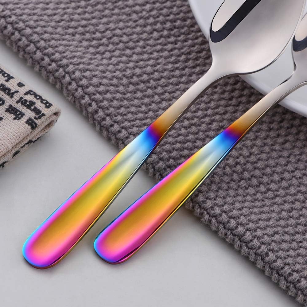 Размер на лъжичката: Глава: Дебелина 0.6 мм, Дълбочина 4 мм, Дръжка: Дебелина 1.6 мм, Дължина 9.5 см, Обща дължина на лъжичката: Дължина 14 см, Ширина 2.9 см, Тегло 25.2 г. Опаковката включва: Чаена лъжичка/лъжичка за кафе, 8 броя/8 цвята. Цветове: Черно/Синьо/Сребърно/Златно/Розово злато/Виолетово/Дъга/Червено залез. ЗАБЕЛЕЖКА 1: Цветът Червено залез е специален цвят; той може да се промени в златист или други цветове, когато температурата се повиши. Когато температурата се върне към нормална, цветът Червено залез ще се появи отново. Това е нормално, моля, разберете. Забележка 2: Боята Червено залез се разбърква на случаен принцип, преди да се напръска върху продуктите, така че не можем да гарантираме, че всички червени залези са с един и същи цвят. Някои червени залези може да изглеждат по-лилави, но това е нормално; може също да промени цвета си, когато температурата се повиши. Оценяваме вашето разбиране. Материал: Висококачествена неръждаема стомана 304 18/10, здрава и устойчива на ръжда. Характеристики: Лека и деликатна. Ежедневна грижа: 1. Изплакнете, измийте и подсушете преди първа употреба. Подходящо за съдомиялна машина. 2. Дръжте на сухо след ежедневна употреба. Миенето на ръце може да помогне за запазване на ярките цветове. За нас: 1. Ние предлагаме навременно и бързо следпродажбено обслужване. 2. Ако имате някакви въпроси или притеснения, моля не се колебайте да се свържете с нас. Ще направим всичко възможно, за да ви помогнем да разрешите проблема.