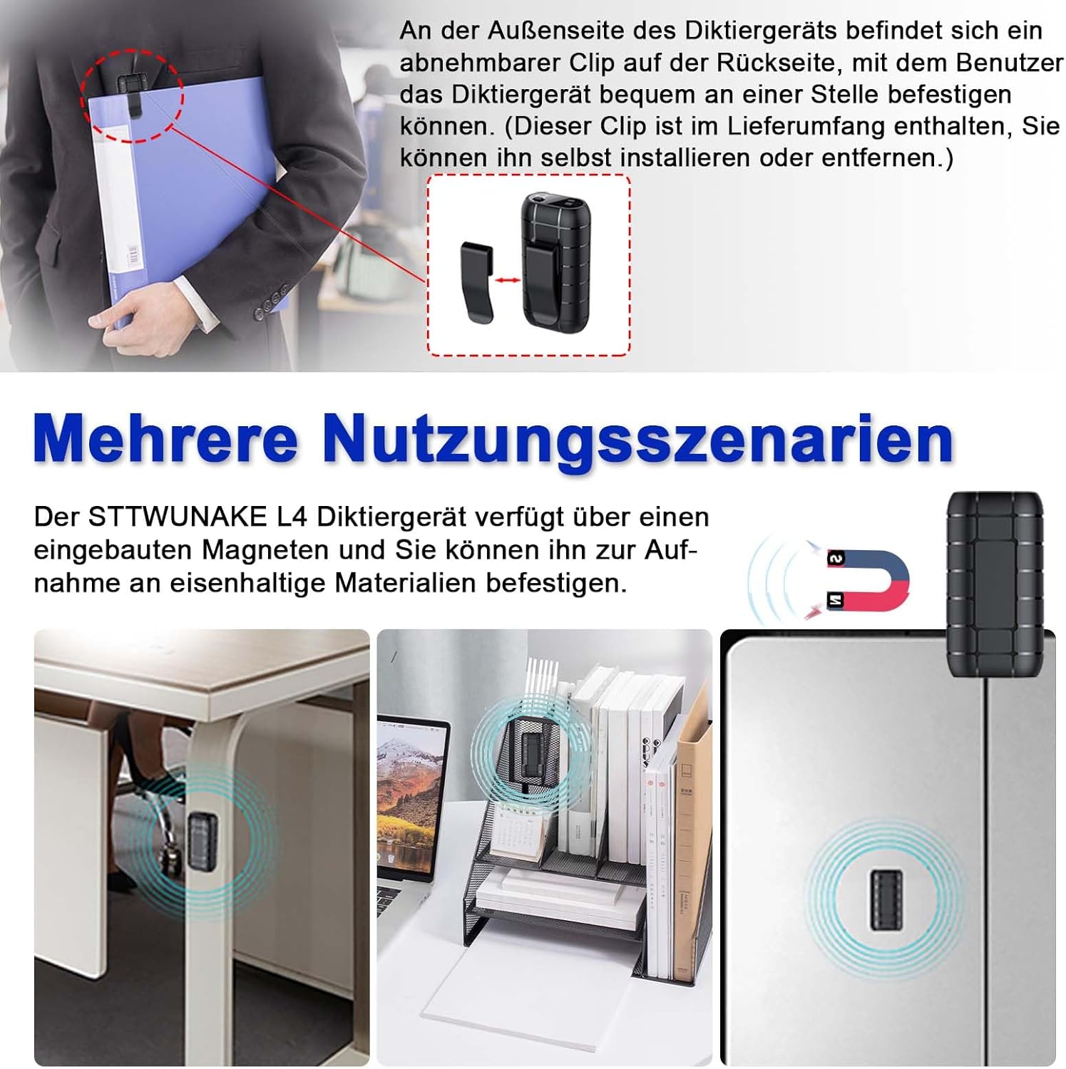 12 дни живот на батерията, 128G магнитен диктофон с гласово активиране, 2000 часа капацитет на запис, цифров аудио рекордер, малки записващи устройства. STTWUNAKE