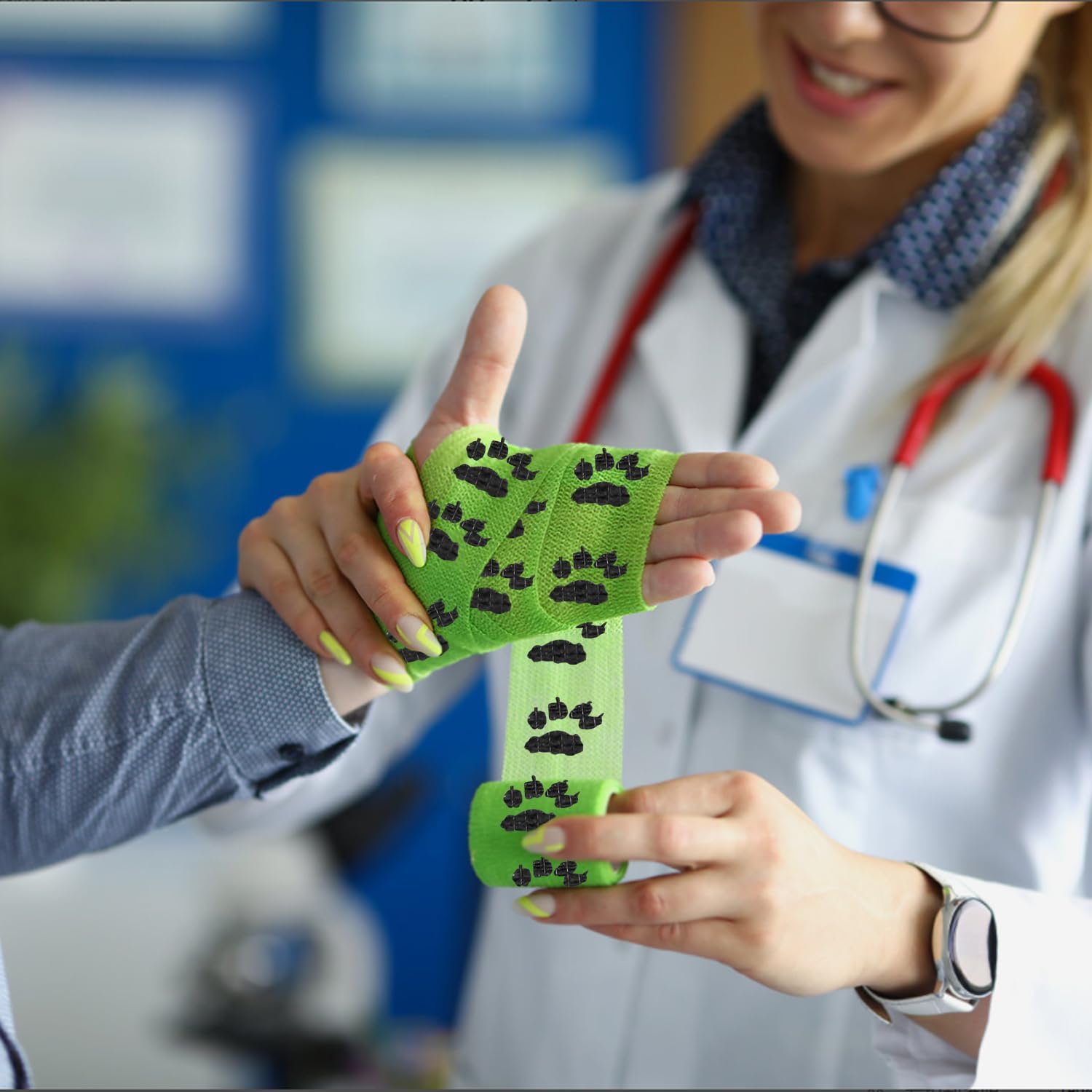 1 ролка самозалепваща се превръзка 5 см x 4,5 м с черен мотив на нокти на зелен фон;