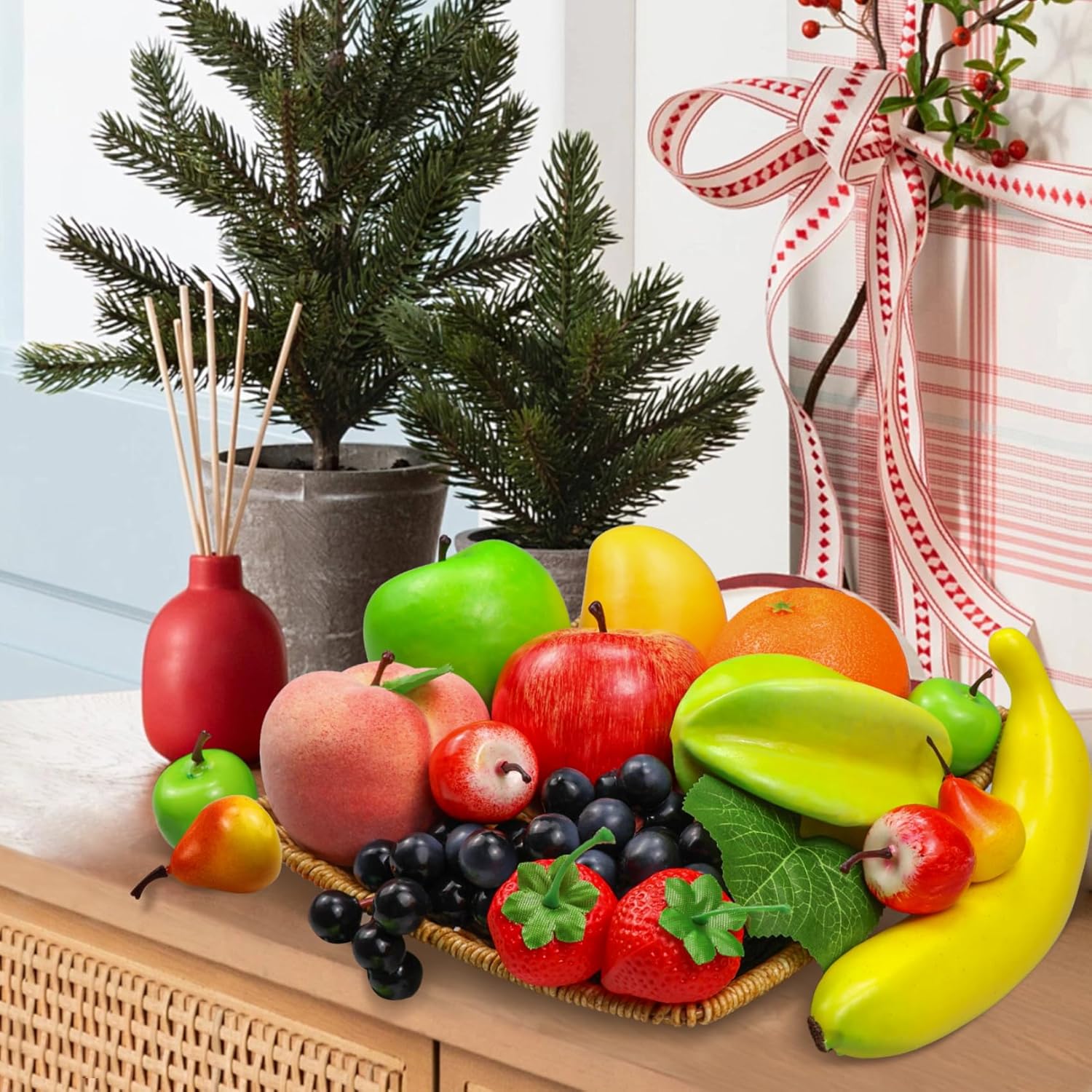 12 вида изкуствени плодове, 12 различни плода в един комплект, изкуствени плодове за домашен декор, комплект симулиращи плодове, коледна украса, плодове за фотосесия, общо 16 броя