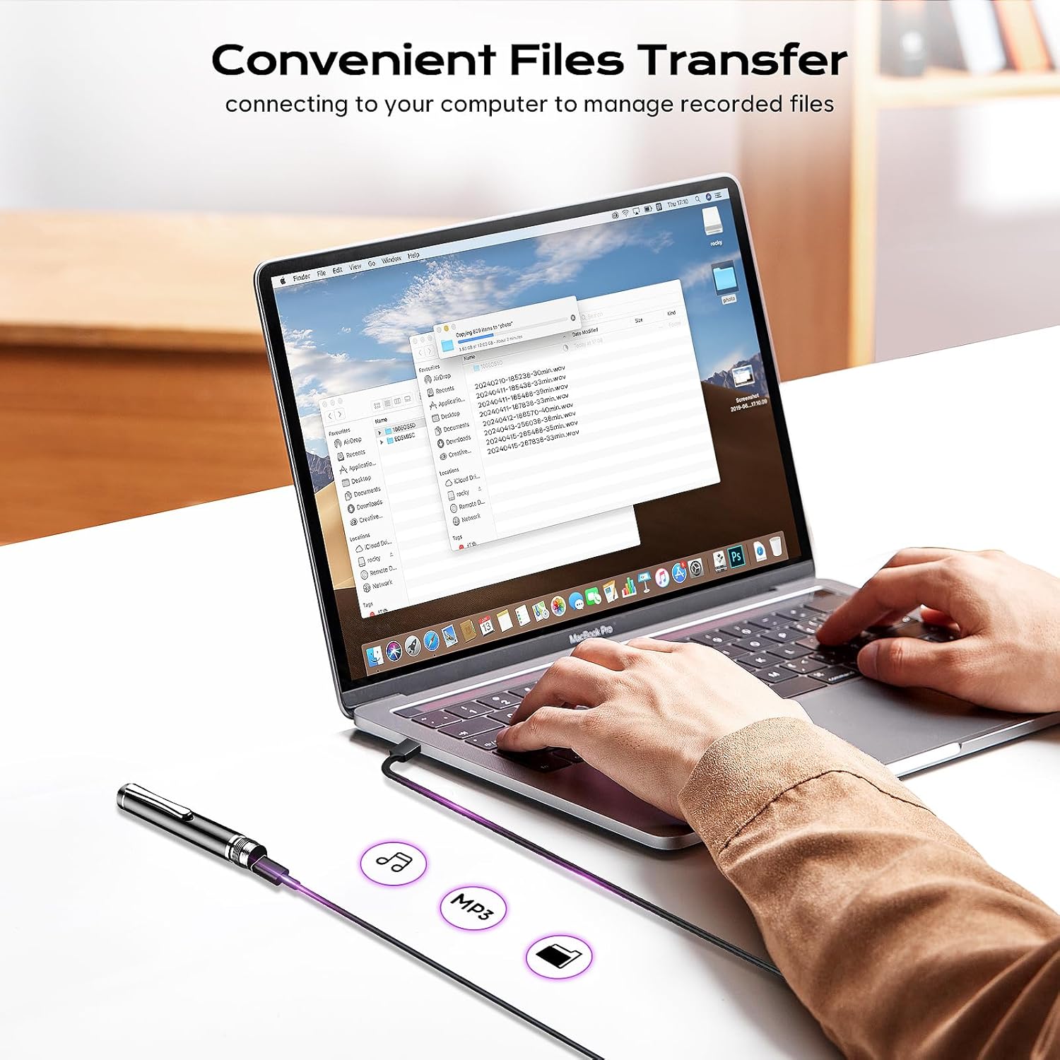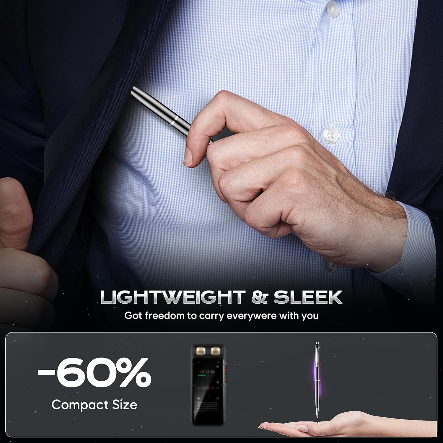 • Удобен диктофон с щипка: Перфектна мобилност - Просто го закачете в джоба си, прикрепете го към страници на книга или бележници. Благодарение на тънкия си дизайн на писалка, той е винаги под ръка и не се натрапва. Изработен от лека, но издръжлива висококачествена сплав с класическо гланцово черно, той е идеалният подарък за студенти, учители, адвокати, бизнесмени и много други.