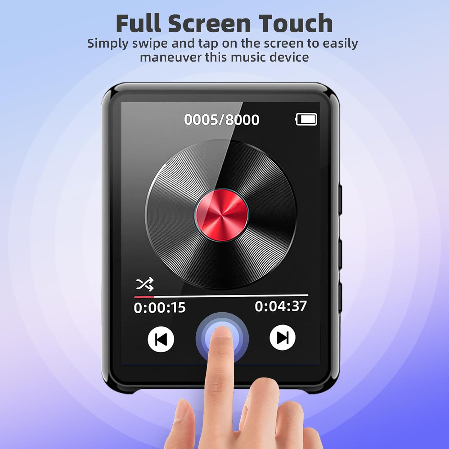 128GB MP3 плейър с Bluetooth, преносим цифров музикален плейър с високоговорител, 2.4" сензорен екран, HiFi звук, FM радио рекордер, включени кабелни слушалки, за бягане, фитнес зала