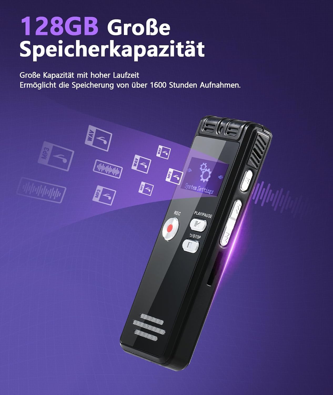 • Голям капацитет от 64 GB: Новообновеният рекордер NekSide поддържа сменяема TF карта от 64 GB (може да съхранява до 800 часа документи), за да отговори на повече изисквания за запис. В зависимост от вашите нужди, можете да сменяте TF карти с различен капацитет. Включена е само една TF карта от 64 GB.