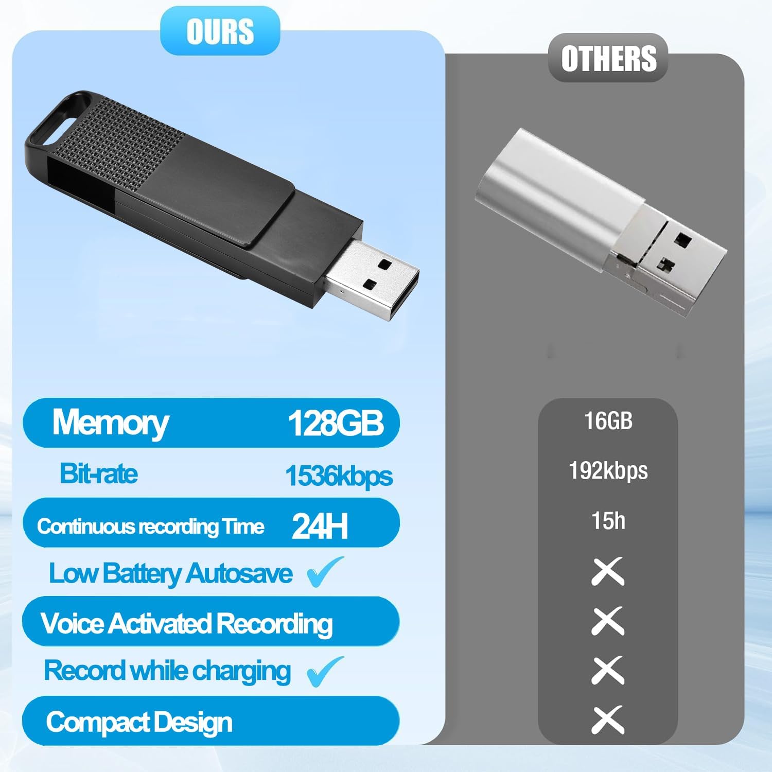 This voice recorder can be set to voice-activated mode. It is automatically recorded when the sound is more than 50 decibels. This allows longer recording and saves more storage space.