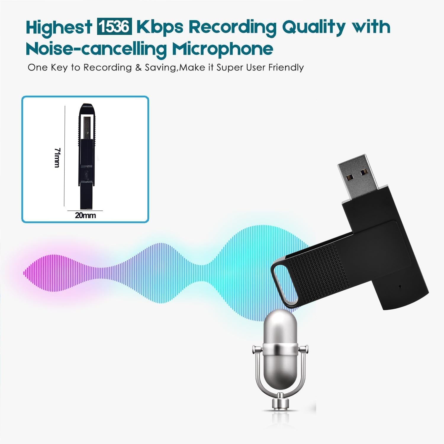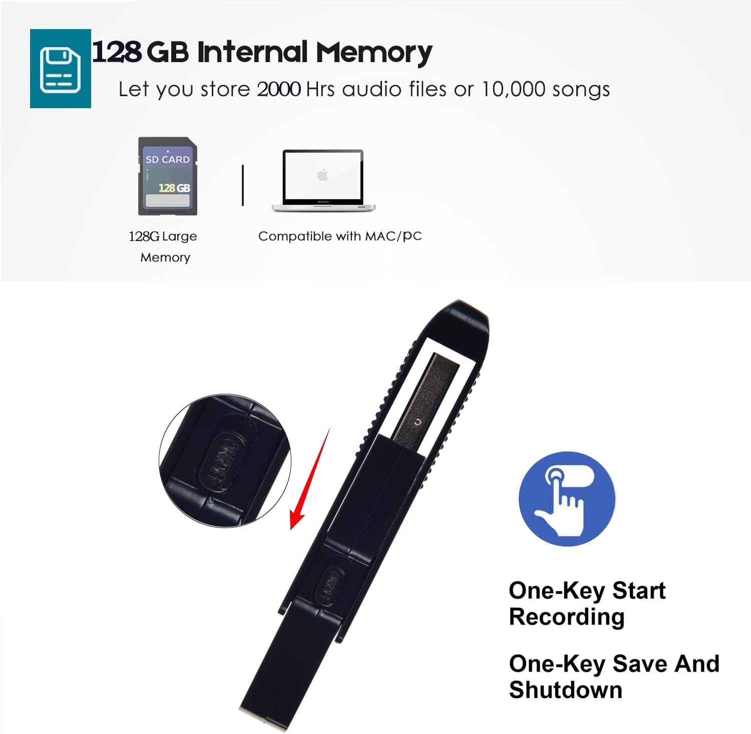 Built-in large internal memory of 64GB, can store up to 750 hours of recording files in 192kbps/wav format. No more worrying about fast storage shortage