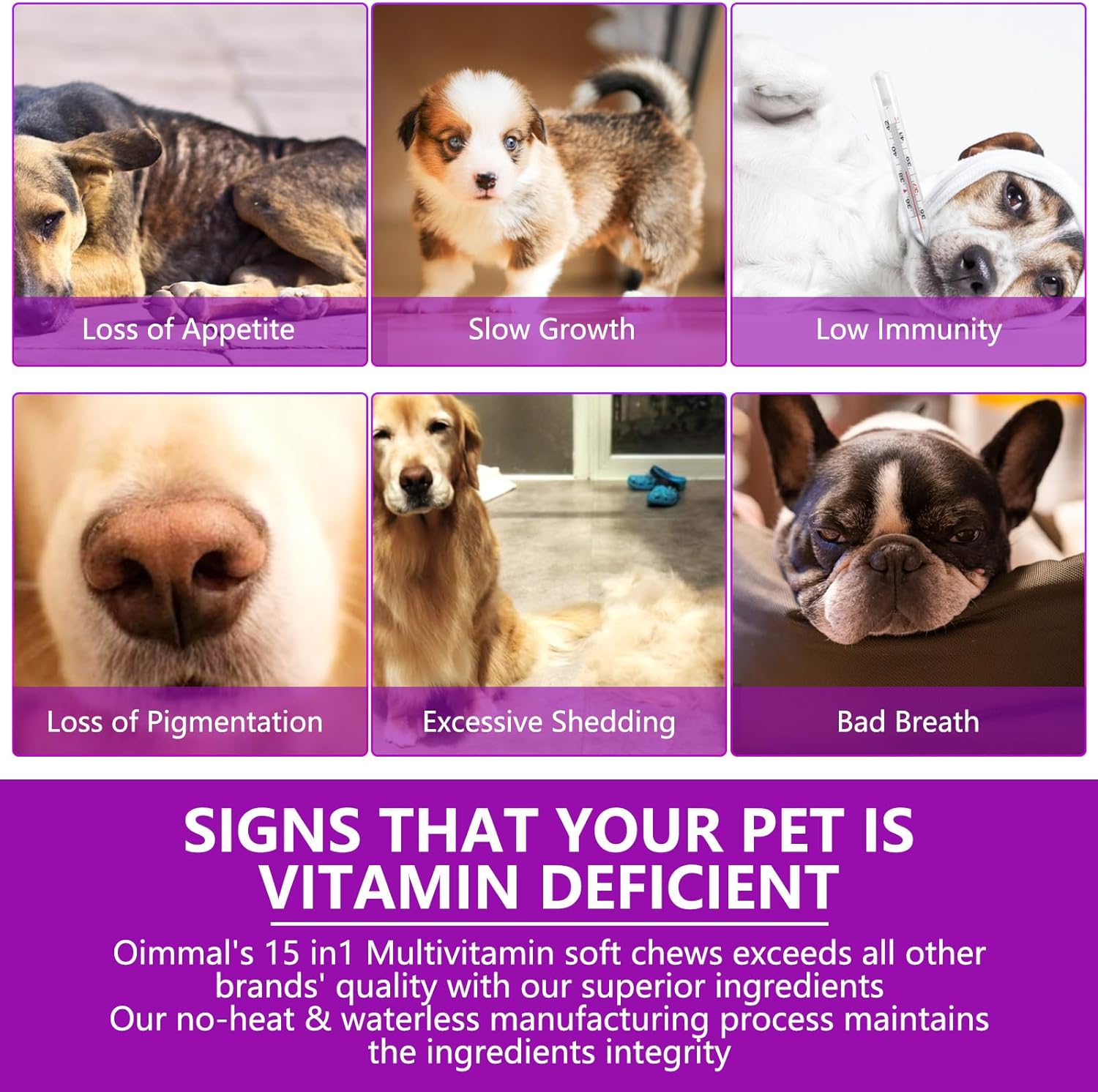 • 【15 в 1 мултивитамин за кучета】Нашият 15 в 1 мултивитамин за кучета предлага уникална и ефективна смес от добавки и витамини за кучета, включително глюкозамин, витамини, пробиотици, витамини A, E, D3 и B12, които подобряват имунната система на вашето куче и правят сърцето му по-силно и здраво.