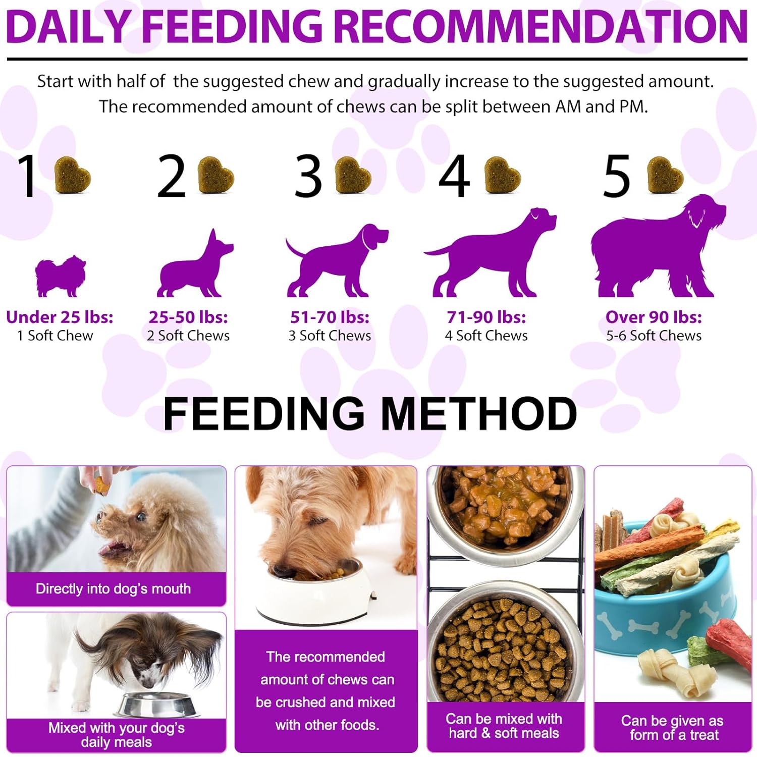 • 【Подобрен вкус】Тези добавки и витамини за кучета имат ултра мека дъвчаща текстура и вкусен естествен вкус на патешко, идеални дори за най-претенциозните хранители! Формулиран от ветеринарни лекари с натурални съставки, този любим вкус на патешко на кучетата позволява на вашия домашен любимец да се наслаждава на здравословна храна.