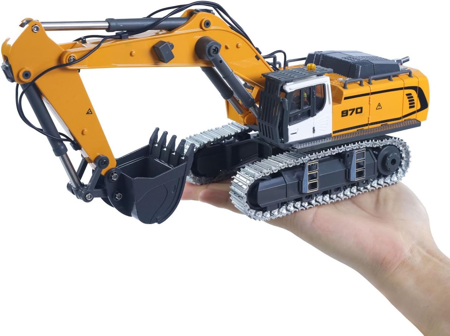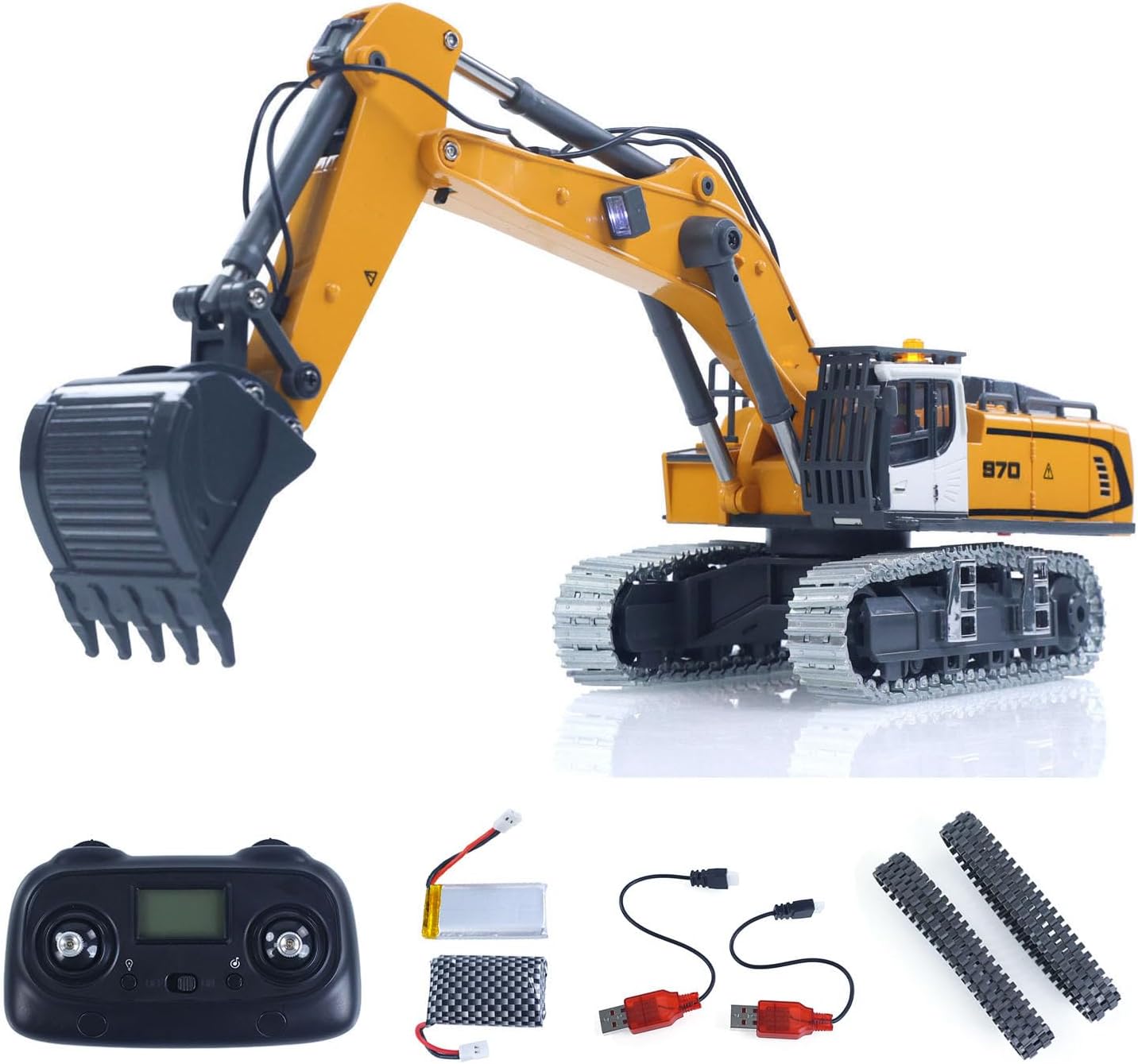 1:50 RC багер Мини K970 строителна машина, дистанционно управляван багер, метална лопата, вериги за вериги, светлинна звукова функция, RTR батерия