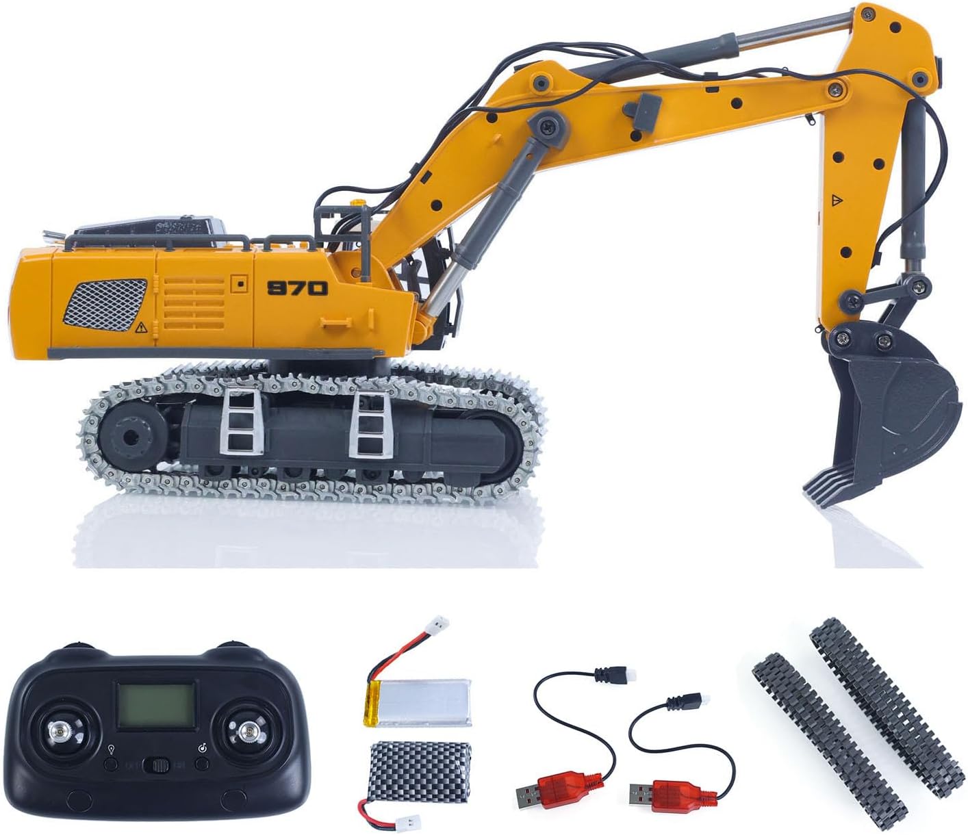 • Включва батерия и зарядно - готово за игра: Съдържание на кутията: Акумулаторна батерия за дистанционно управление и USB зарядно за лесно зареждане. Бонус: резервни пластмасови гъсеници за лесна подмяна.