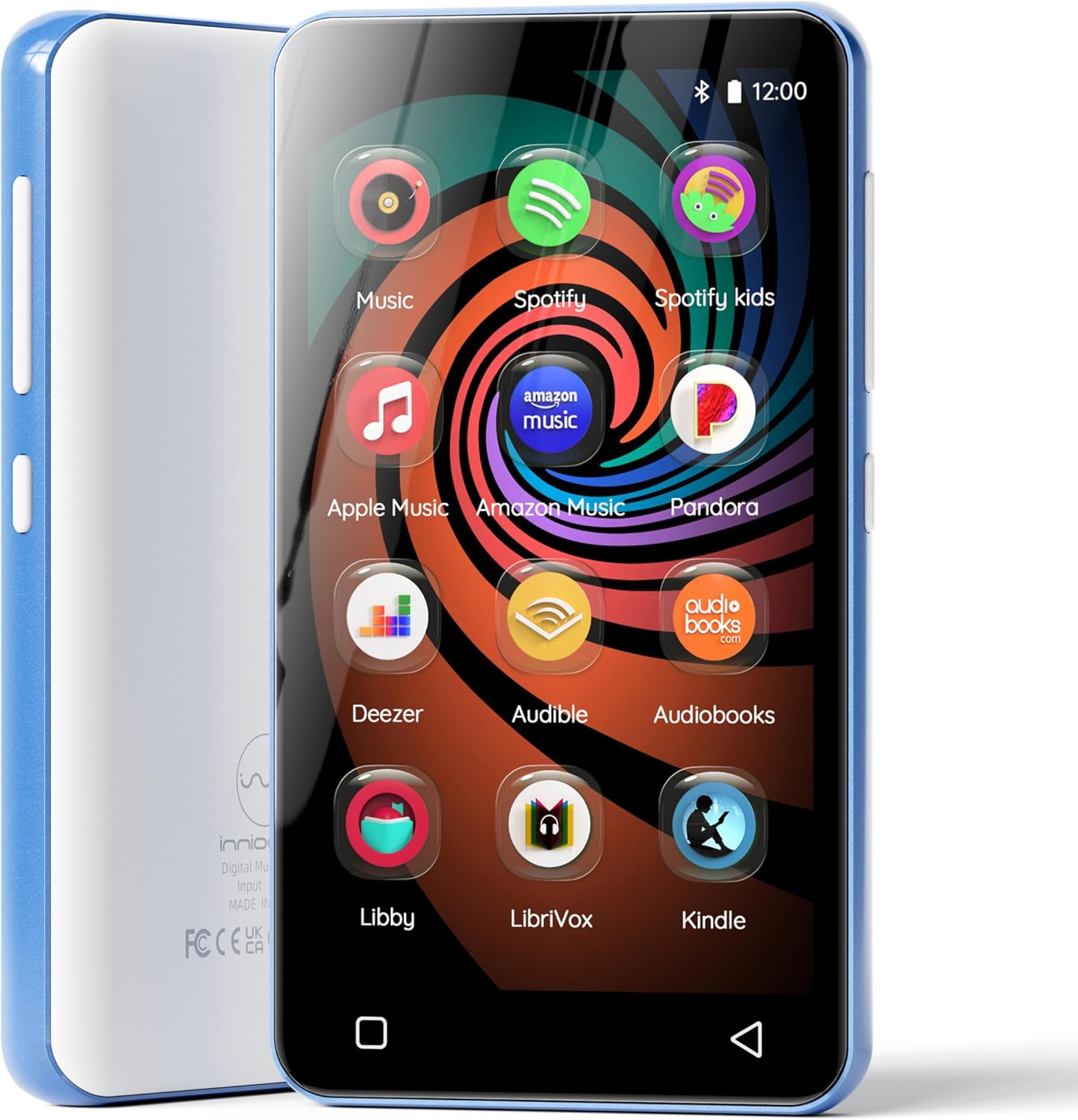 160G Spotify MP3 плейър с Bluetooth, Innioasis MP4 плейър с Amazon Music, Audible, Deezer, Hi-Fi 4-инчов музикален плейър с тъчскрийн и Wi-Fi (син)