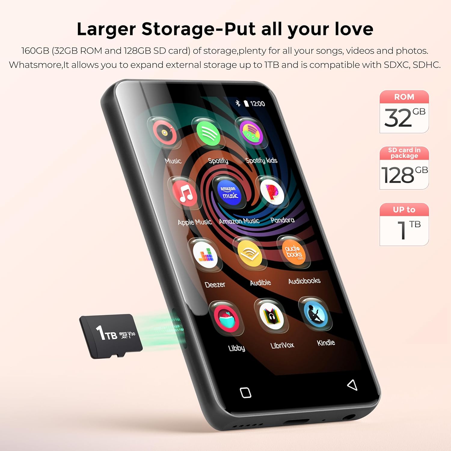 • 160GB ГОЛЯМА ПАМЕТ - Плейърът innioasis Spotify е оборудван с 8-ядрен процесор, 2GB RAM и 32GB ROM памет за безпроблемно изпълнение на програмите. В допълнение, музикалният плейър Spotify има SD карта от 128GB, която ви позволява да съхранявате всички песни, които обичате от години, освобождавайки място в паметта на телефона ви. Освен това, плейърът има слот за разширение на паметта с капацитет до 1 TB.