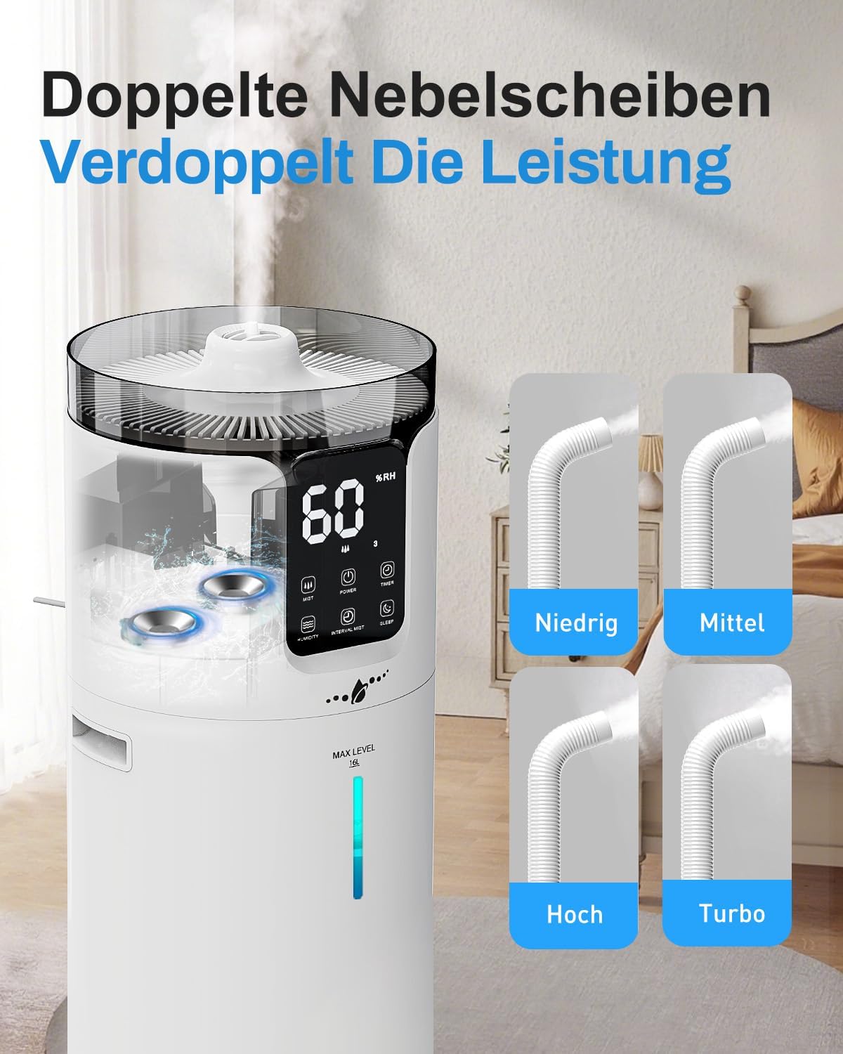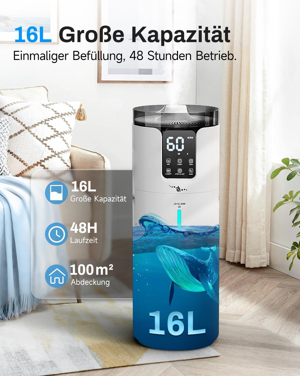 16L ултразвуков овлажнител за големи стаи, спалня, овлажнител с пълнене отгоре с хладна мъгла и ароматно масло, подходящ за бебета и детска стая