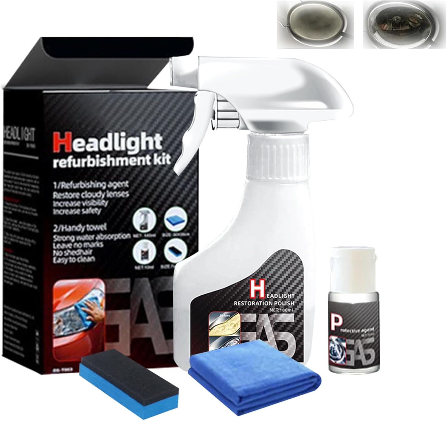 180 мл спрей за полиране на автомобилни фарове, комплект течности за третиране на фарове, течен препарат за ремонт на фарове, спрей за ремонт на автомобилни фарове за почистване, полиране, матиране, пожълтяване