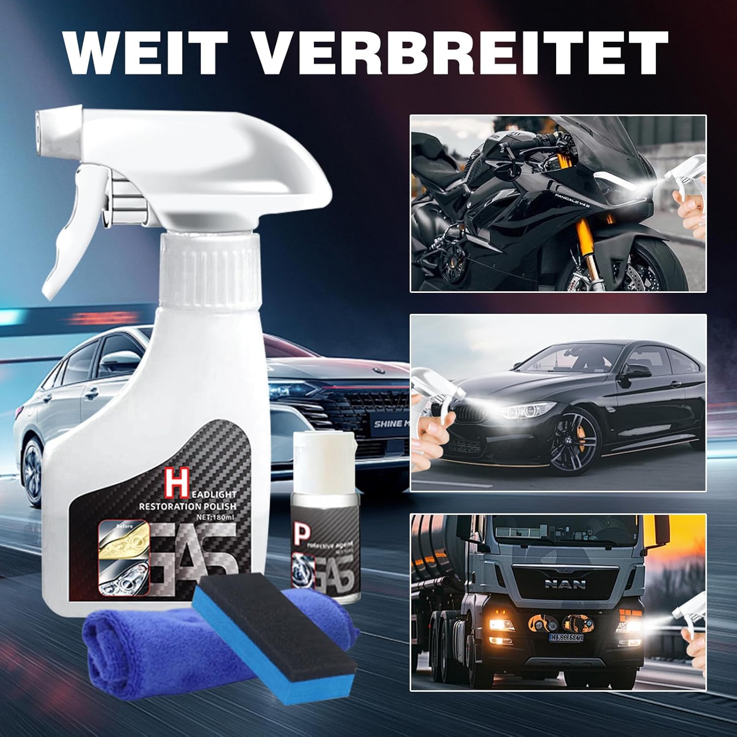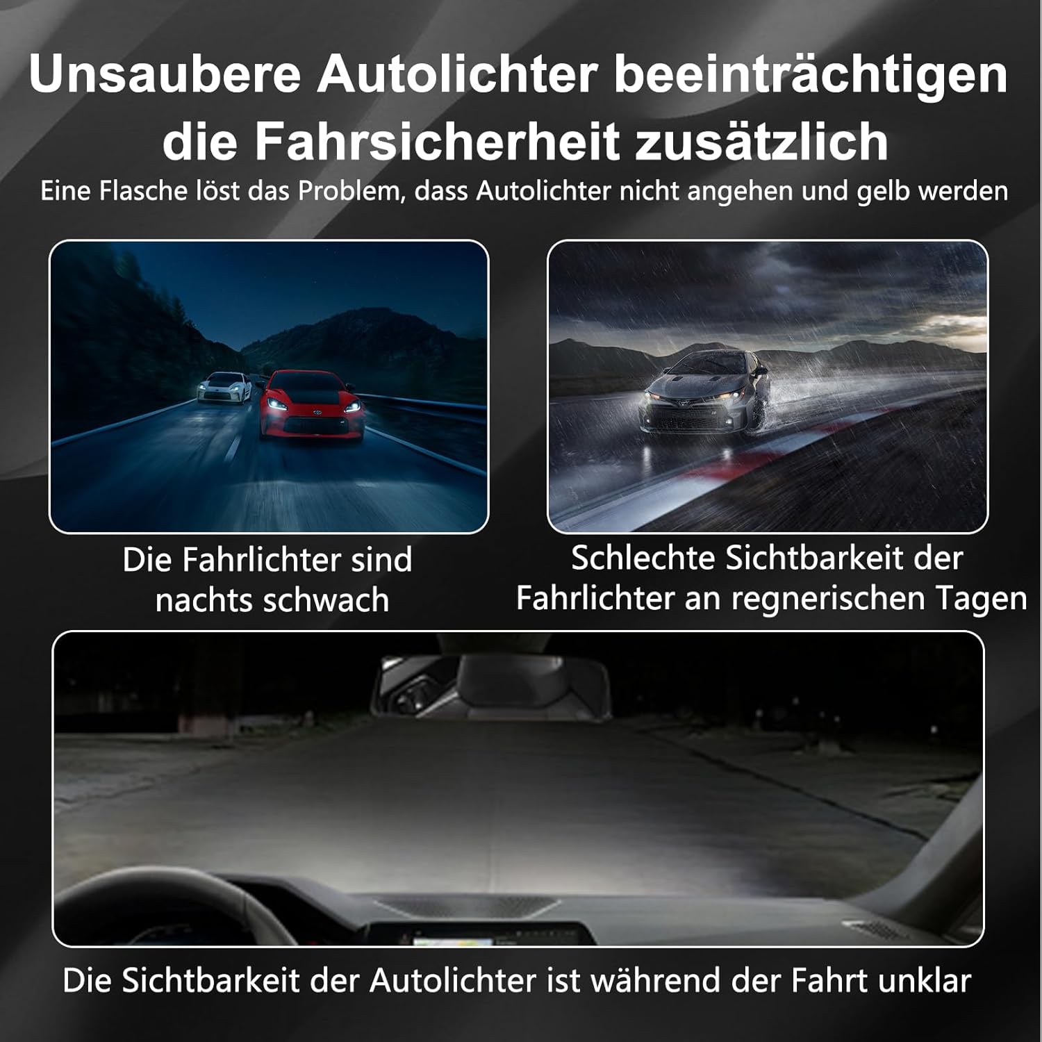 • Комплект покрития 180 мл: течният препарат за ремонт на фарове е лесен за употреба, не е необходимо да се сваля фарът на автомобила. Поправете пожълтелите, замъглени, окислени и надраскани участъци от лещата на фара. Придайте на новата повърхност висок гланц и предотвратите нови повреди.