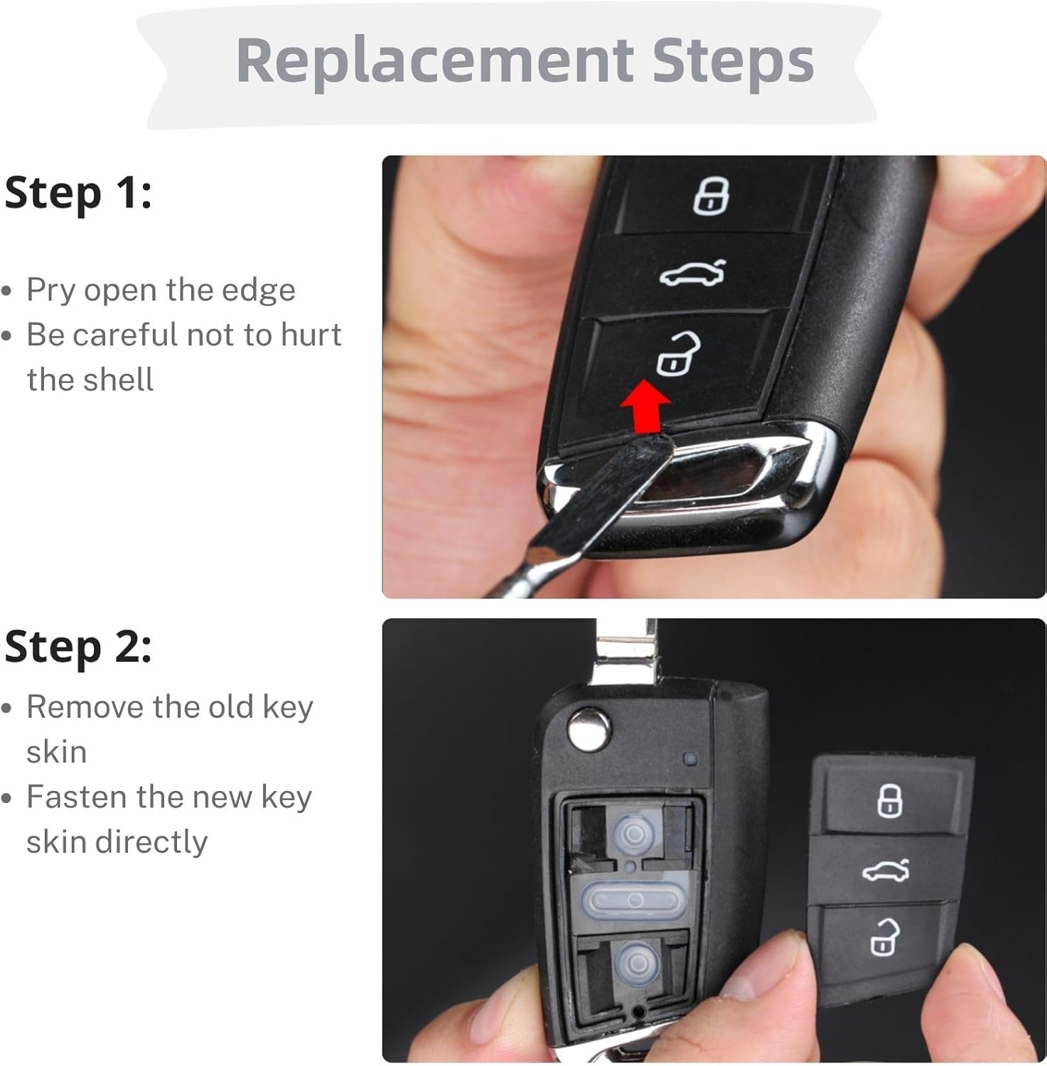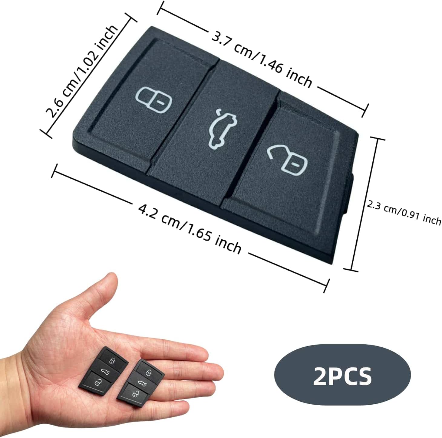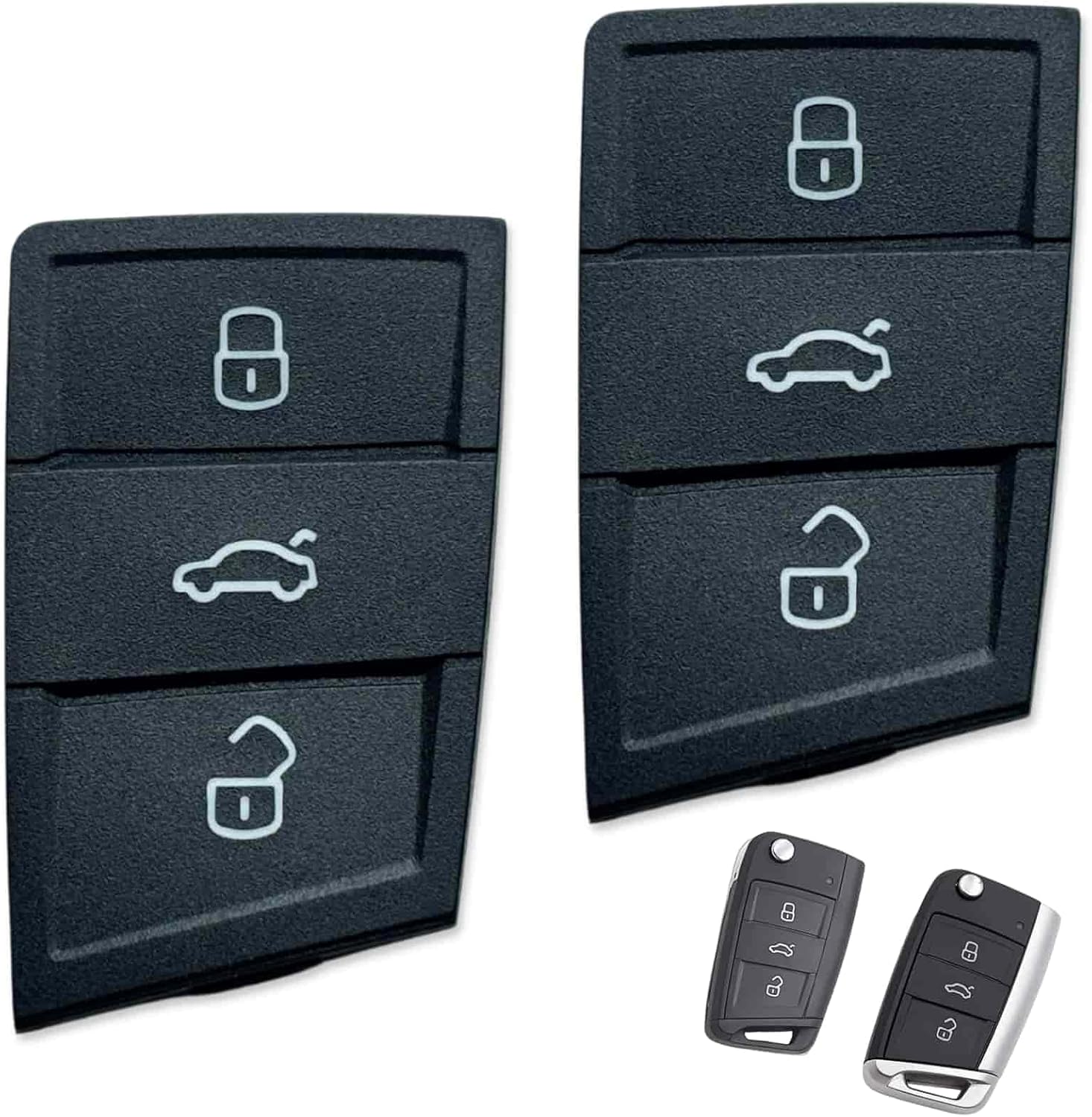 Изпитайте перфектната комбинация от функционалност и издръжливост с нашите 3-бутонни резервни клавиатури за дистанционното управление на вашия автомобил. Изработени от висококачествена, мека гума, те предлагат оптимален комфорт и са изключително здрави на ежедневно износване. Тези клавиатури са специално проектирани за безпроблемна съвместимост с модели като VW Polo, Golf 7, Skoda Karoq и други, което ги прави идеалният избор за подмяна на износени или повредени оригинални накладки. Уверете се, че текущата ви клавиатура съответства на показаната на снимките за перфектно прилягане. Разчитайте на качество, което издържа, и се насладете на лекотата на използване на вашия автомобил с нашата резервна клавиатура.
