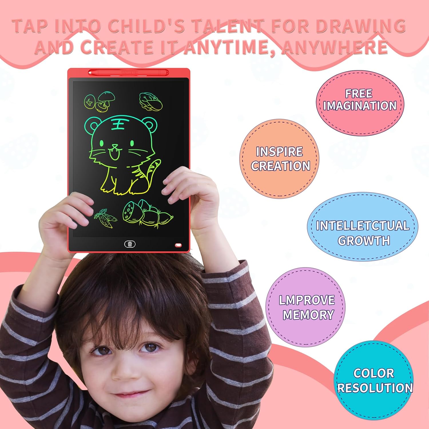 [2 броя] LCD дъска за писане, 12 инча, цветен LCD таблет за писане Genialba, LCD таблет за писане, електронен таблет, графичен таблет за детски игри 2 3 4 5 6 7 години момчета момичета (син и червен)