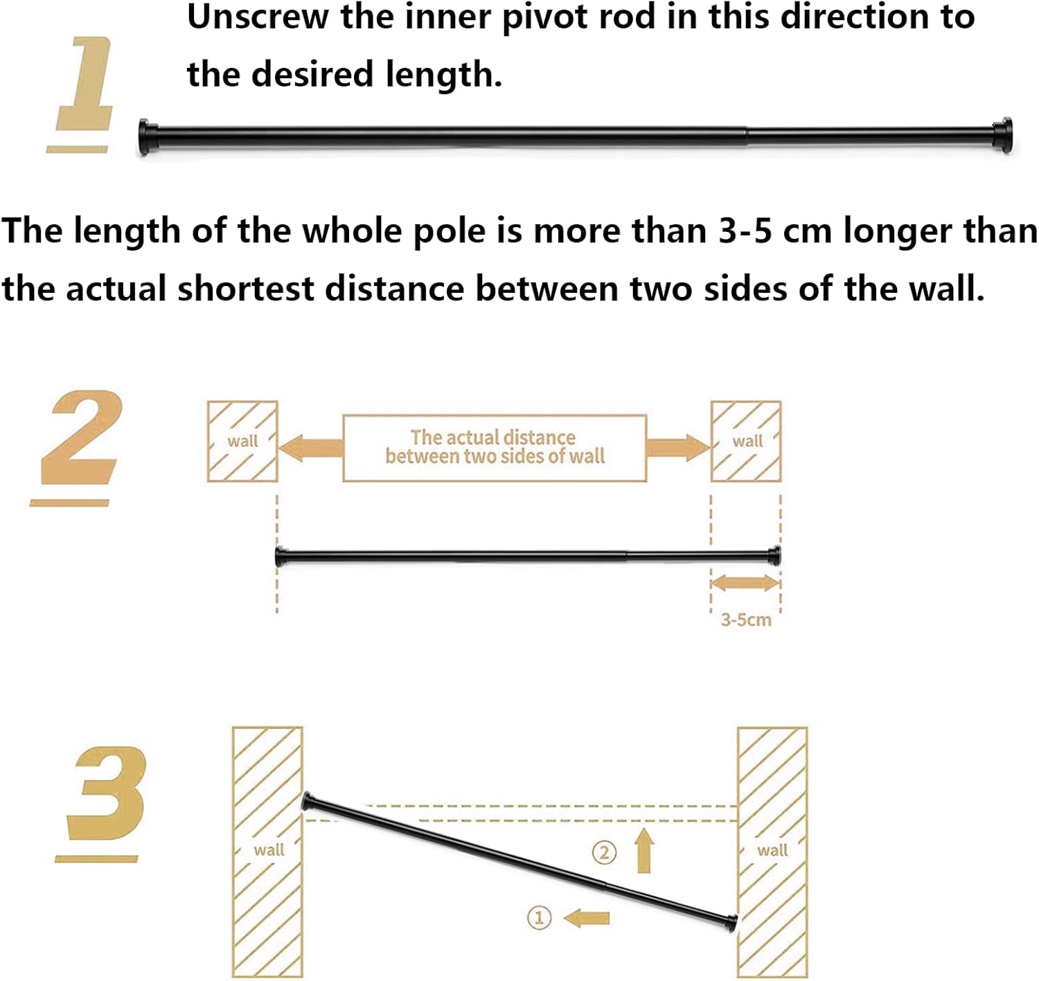 • Здрав и издръжлив: Изработен от висококачествена неръждаема стомана, той е устойчив на ръжда, корозия и издръжлив; Отличната му товароносимост прави пръта стабилен и надежден и не му позволява лесно да се хлъзга.