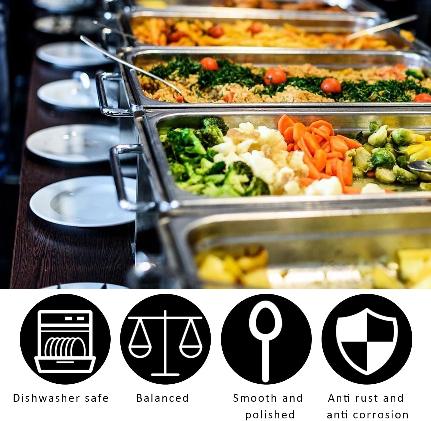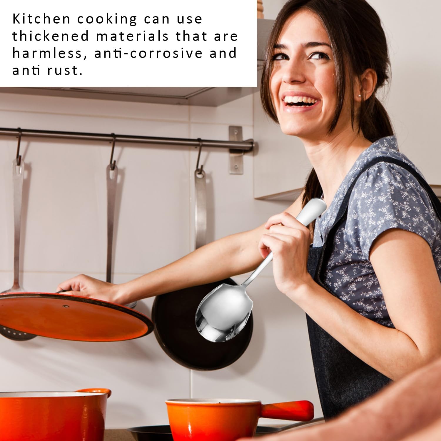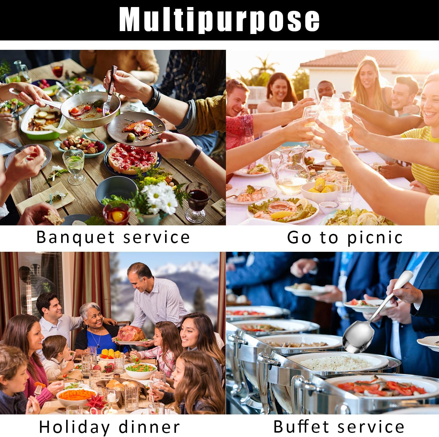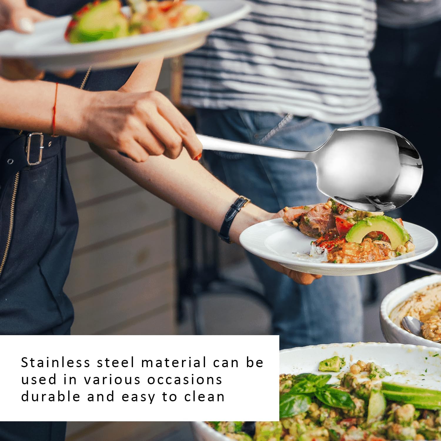 1. Главата на голямата лъжица за сервиране от неръждаема стомана е уголемена и разширена, което я прави удобна за сервиране на храна. 2. Сребърните лъжици за сервиране с дълга дръжка могат да се използват за сервиране, готвене и прехвърляне на твърди храни и течности. 3. Тези лъжици за сервиране от неръждаема стомана са идеални за ресторанти, барове, бюфети, кетъринг и домашна употреба.