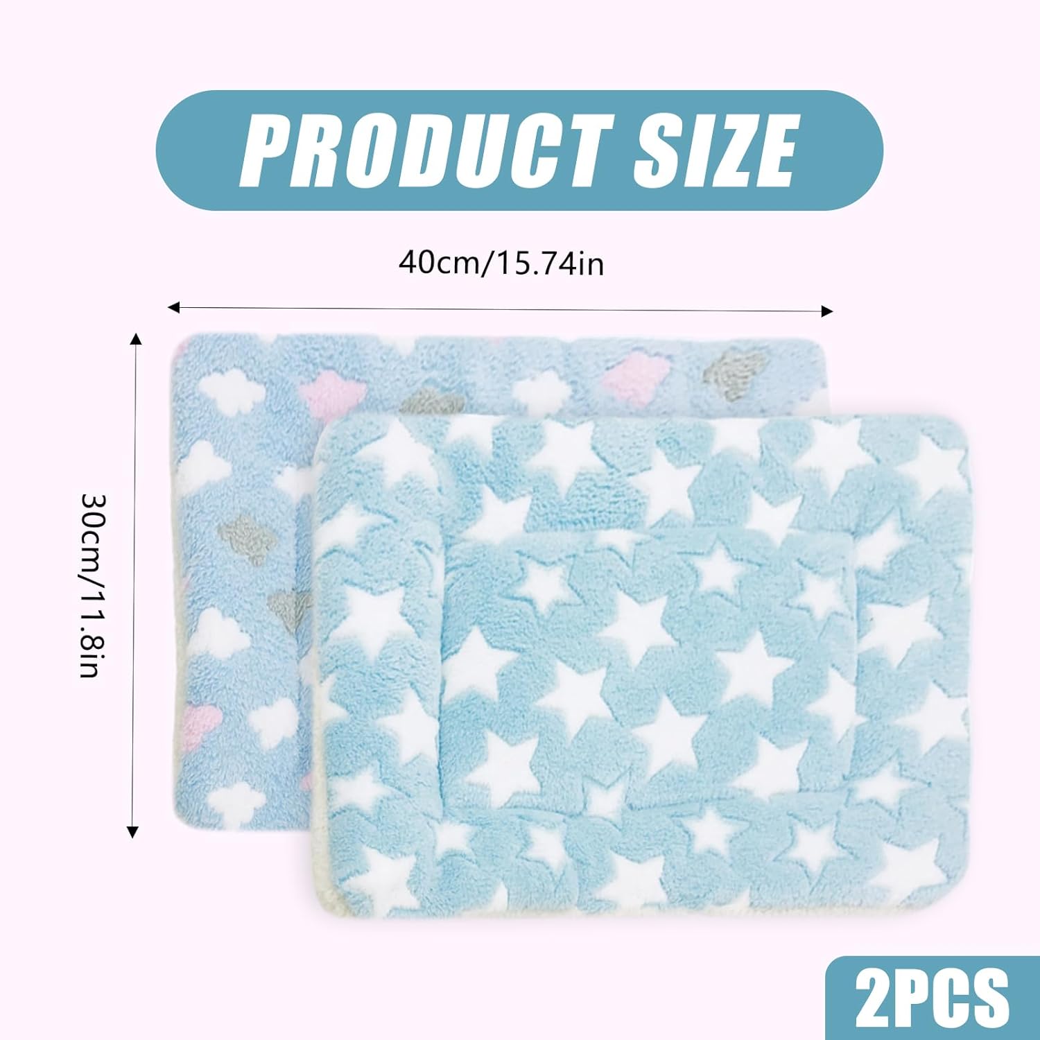 Плюшено легло за малки животни, 2 броя, подплата за клетка за морски свинчета от полар, топъл лен за зайци, постелка за спане за морски свинчета, която може да се пере, одеяла за зайци за клетки, зимна възглавница за морски свинчета за зайци, хамстери, порове, таралежи, чинчили, зайчета (11,8 x 15,7 инча/30 x 40 см)