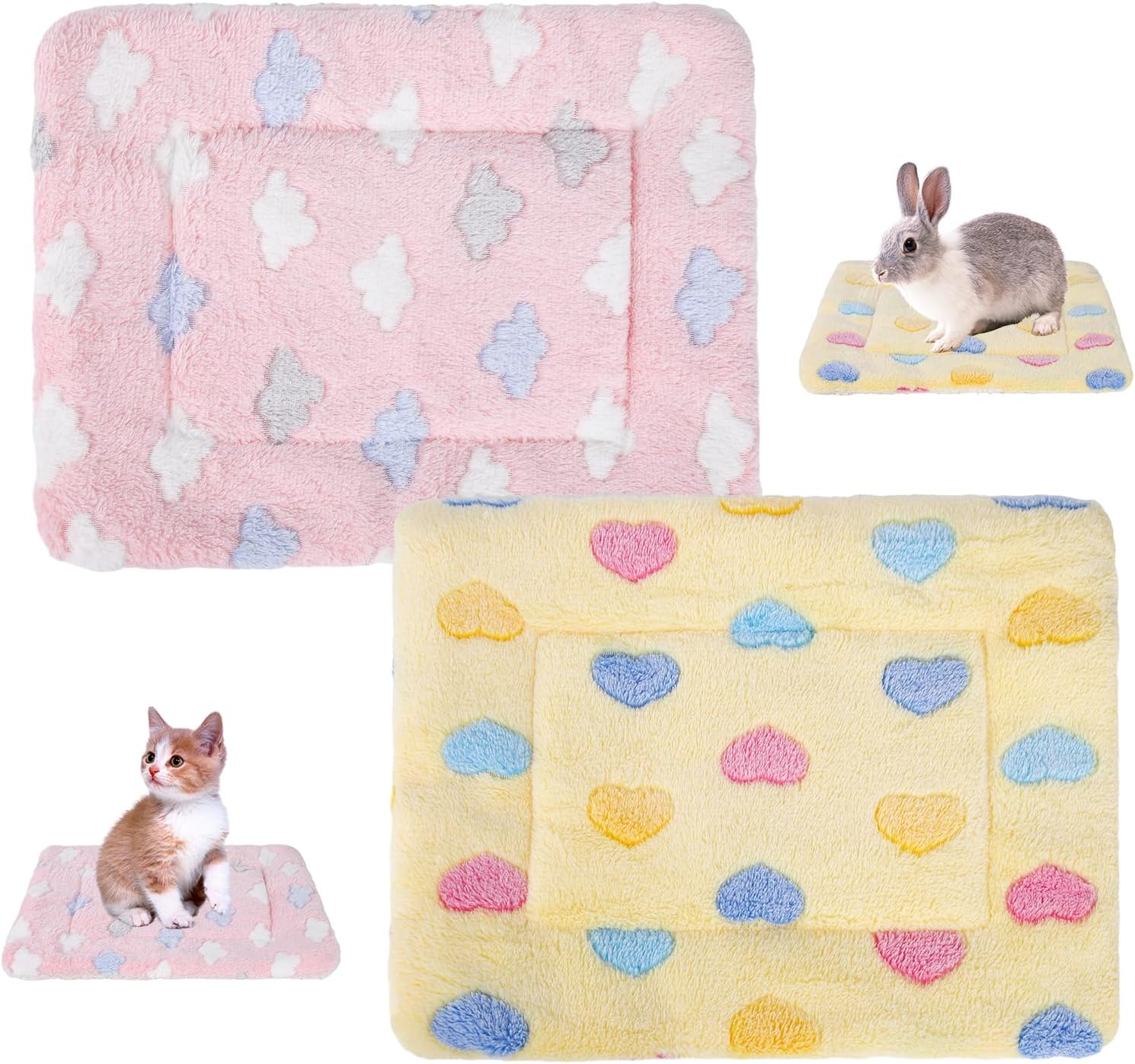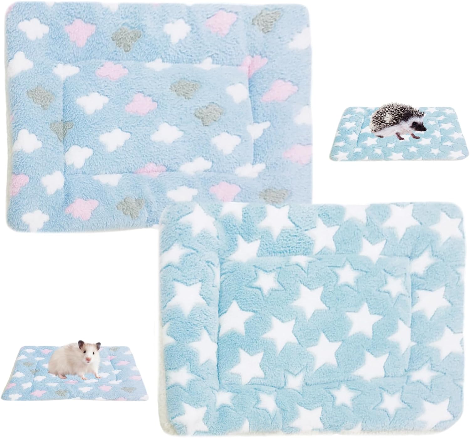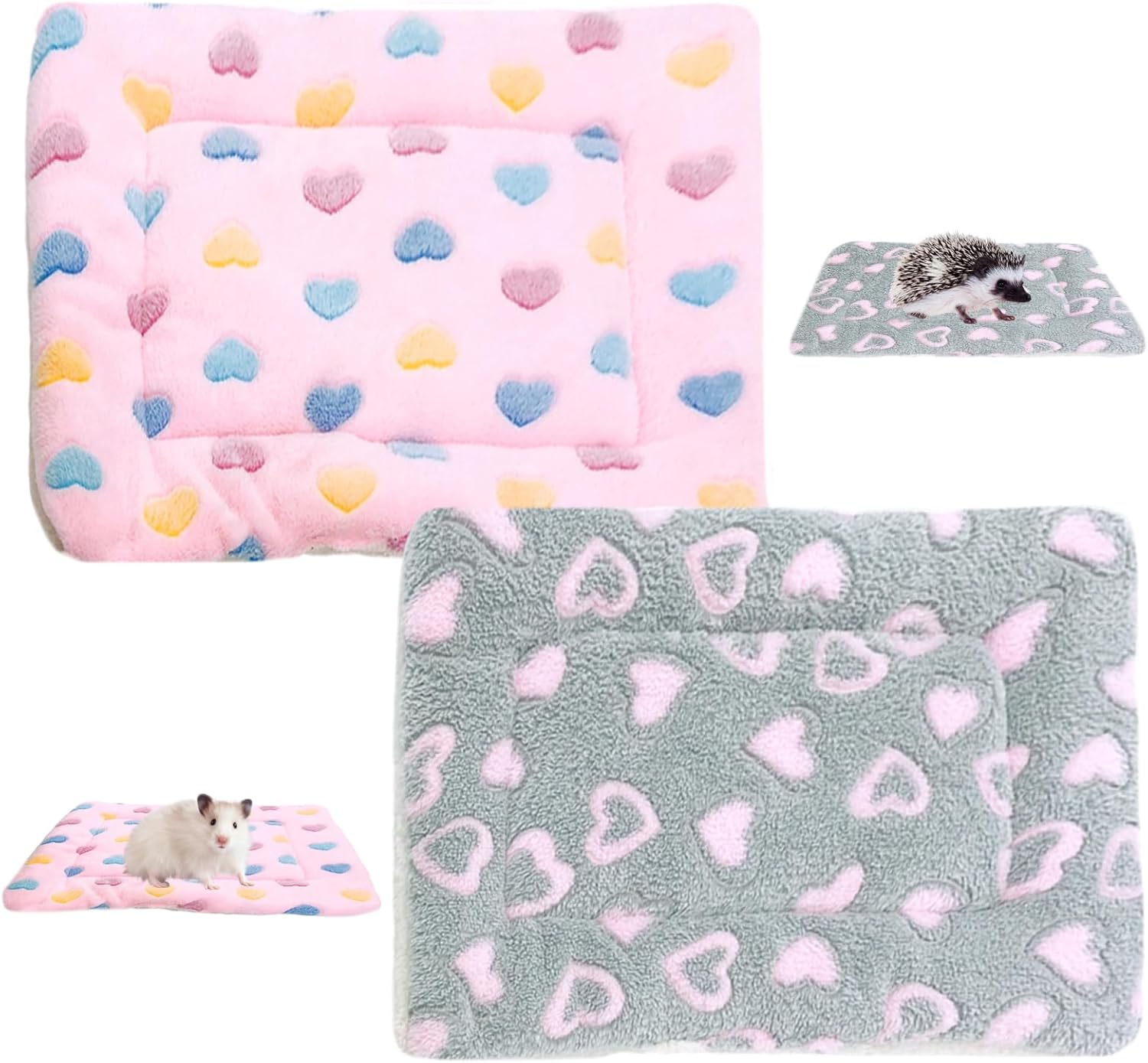 Плюшено легло за малки животни, 2 броя, подплата за клетка за морски свинчета от полар, топъл лен за зайци, постелка за спане за морски свинчета, която може да се пере, одеяла за зайци за клетки, зимна възглавница за морски свинчета за зайци, хамстери, порове, таралежи, чинчили, зайчета (11,8 x 15,7 инча/30 x 40 см)