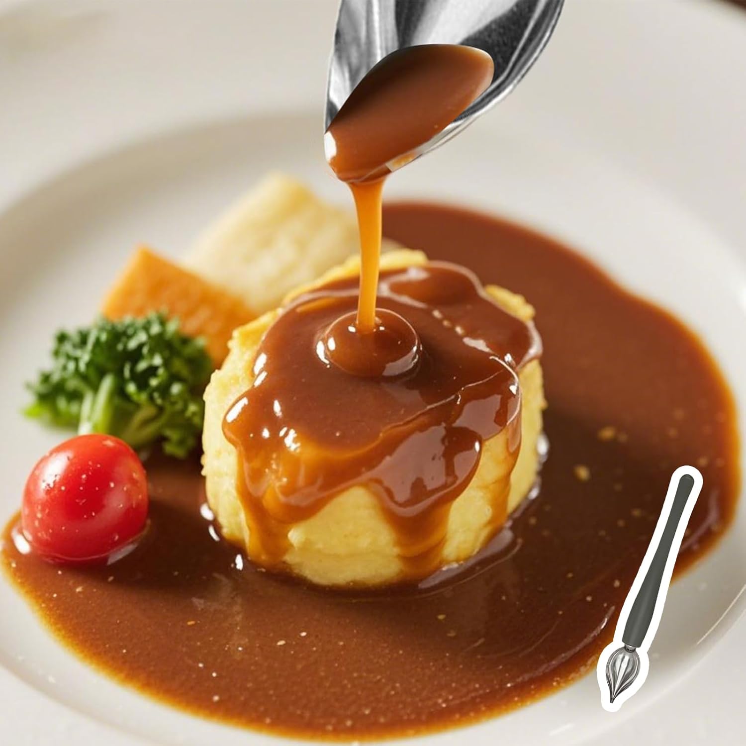 2. Ергономичен и универсаленДизайнът с форма на лъжица със заоблена дръжка стои здраво в ръката и предотвратява умората при продължителна употреба. Тънкият, гъвкав връх контролира прецизно количеството течност – от нежно ръмеше до ясно очертани точки. Независимо дали става въпрос за сосове по ръба на чиниите, десертни гарнитури или малки сладкиши: лъжиците работят с всички вискозни вещества (топено сирене, мед, кисело мляко) и са подходящи за миялна машина за лесно почистване.