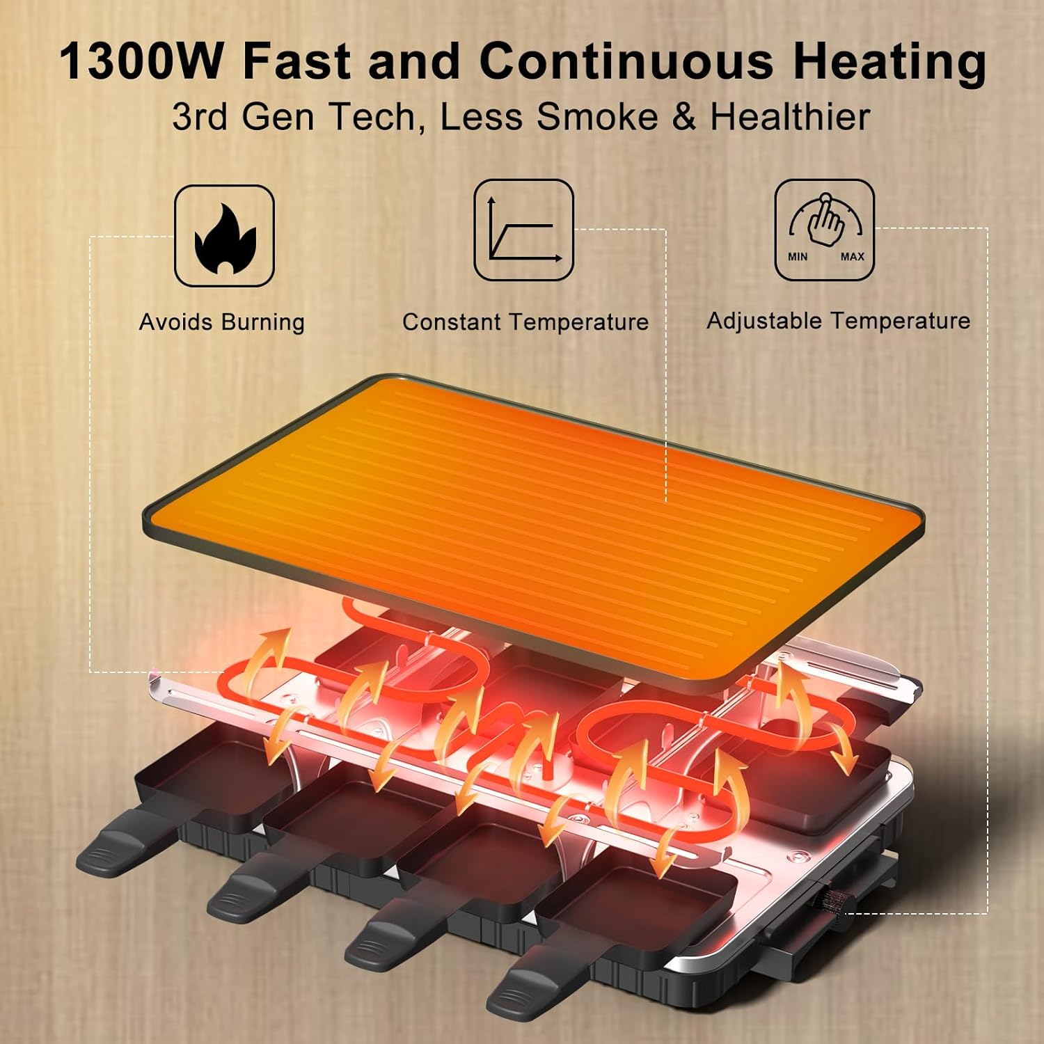 Dieser tischgrill kommt sowohl mit Grillplatte als auch mit grillpfanne mit einer PFOA-freien Antihaftbeschichtung für optimale Ergebnisse und einfache Reinigung, keine zugesetzten Fremdfette und reduziert Fett und Rauch für ein gesundes Grillen. Der Grillplatte kann zerlegt und mit einem feuchten Tuch abgewischt oder in der Spülmaschine gewaschen werden.