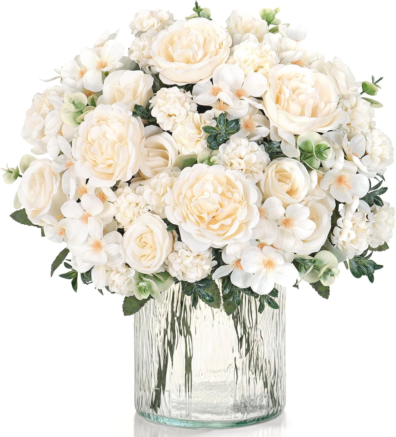 Изкуствени цветя от божури, рози и хортензии, пълни с жизненост и красота. Добавете елегантност и романтика към декорацията на вашата трапеза, сватба, парти и домашен декор.