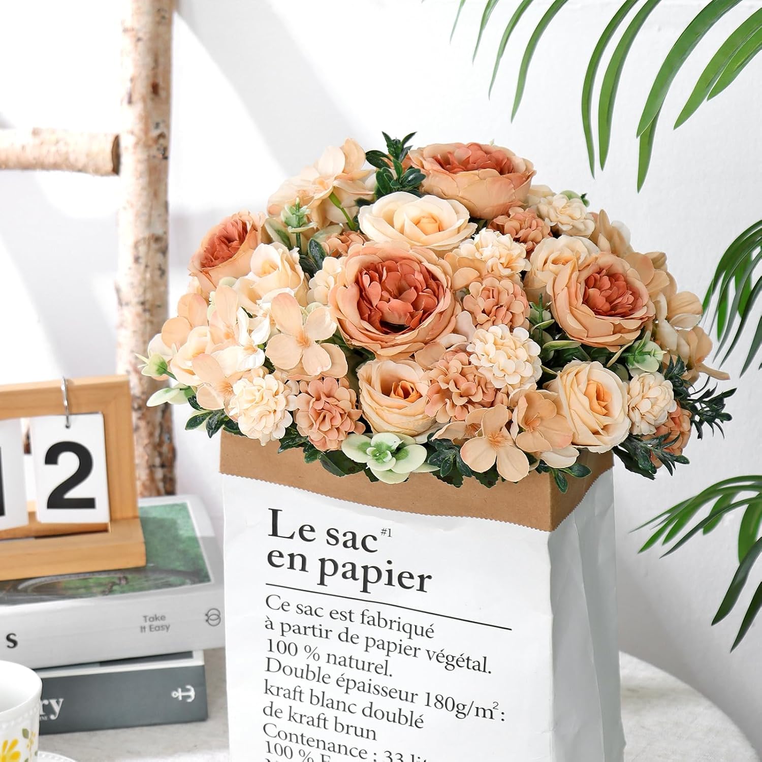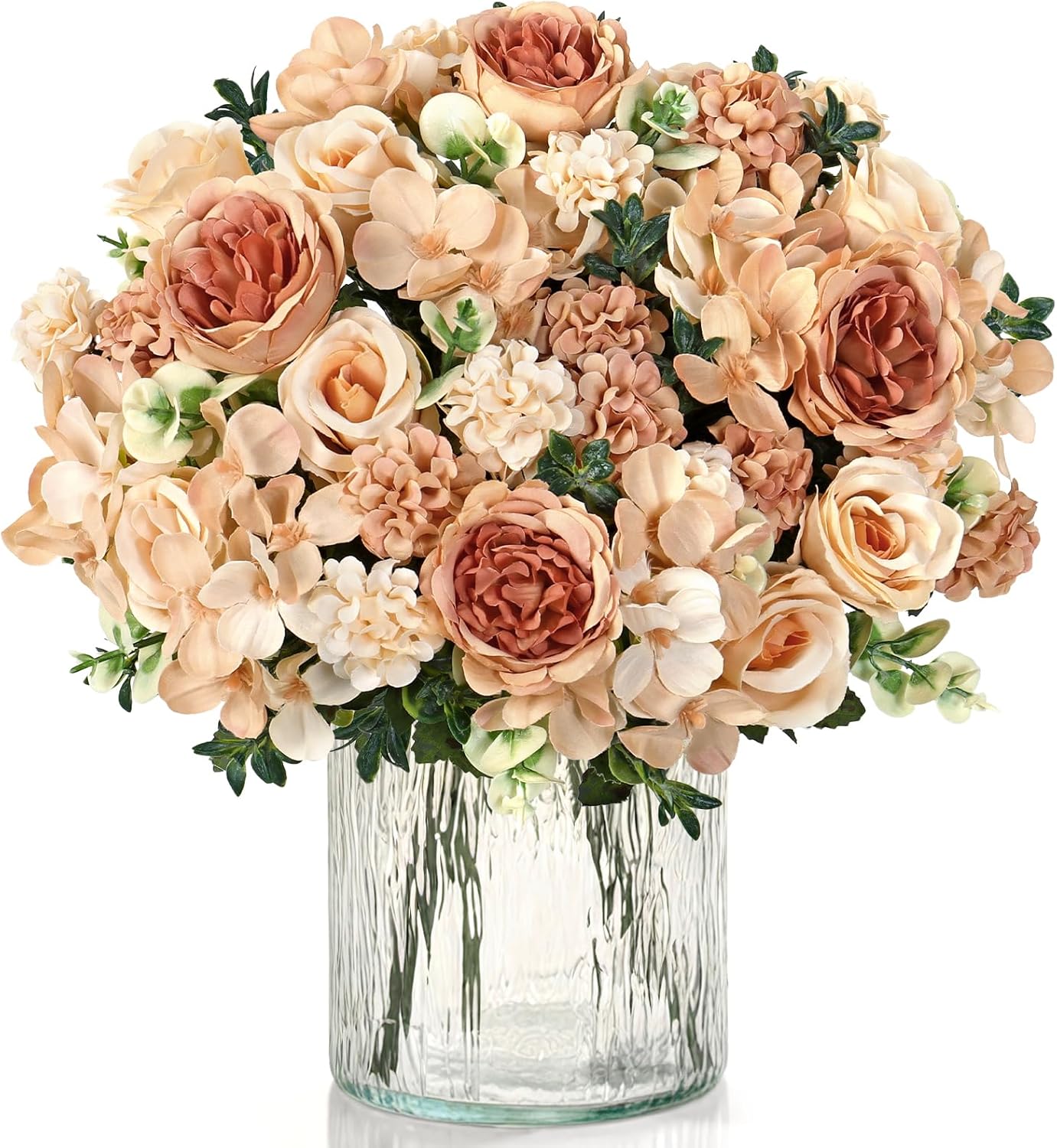 Изкуствени цветя от божури, рози и хортензии, пълни с жизненост и красота. Добавете елегантност и романтика към декорацията на вашата трапеза, сватба, парти и домашен декор.