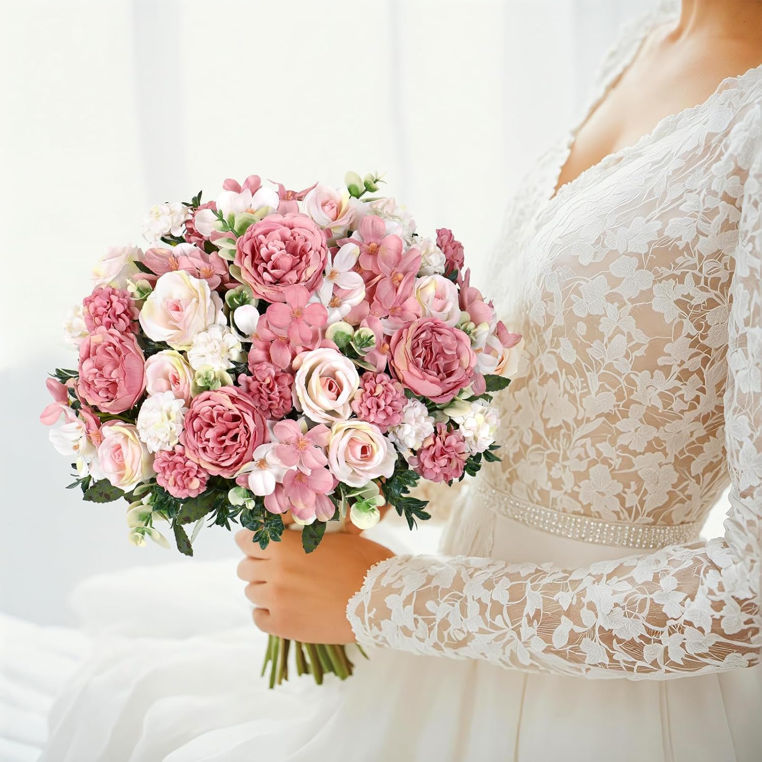 Artificial peony rose flowers with fuller, more round shape, easy to make a beautiful bridal bouquet. It is a good choice to make a specific wedding bouquet. You will receive many compliments