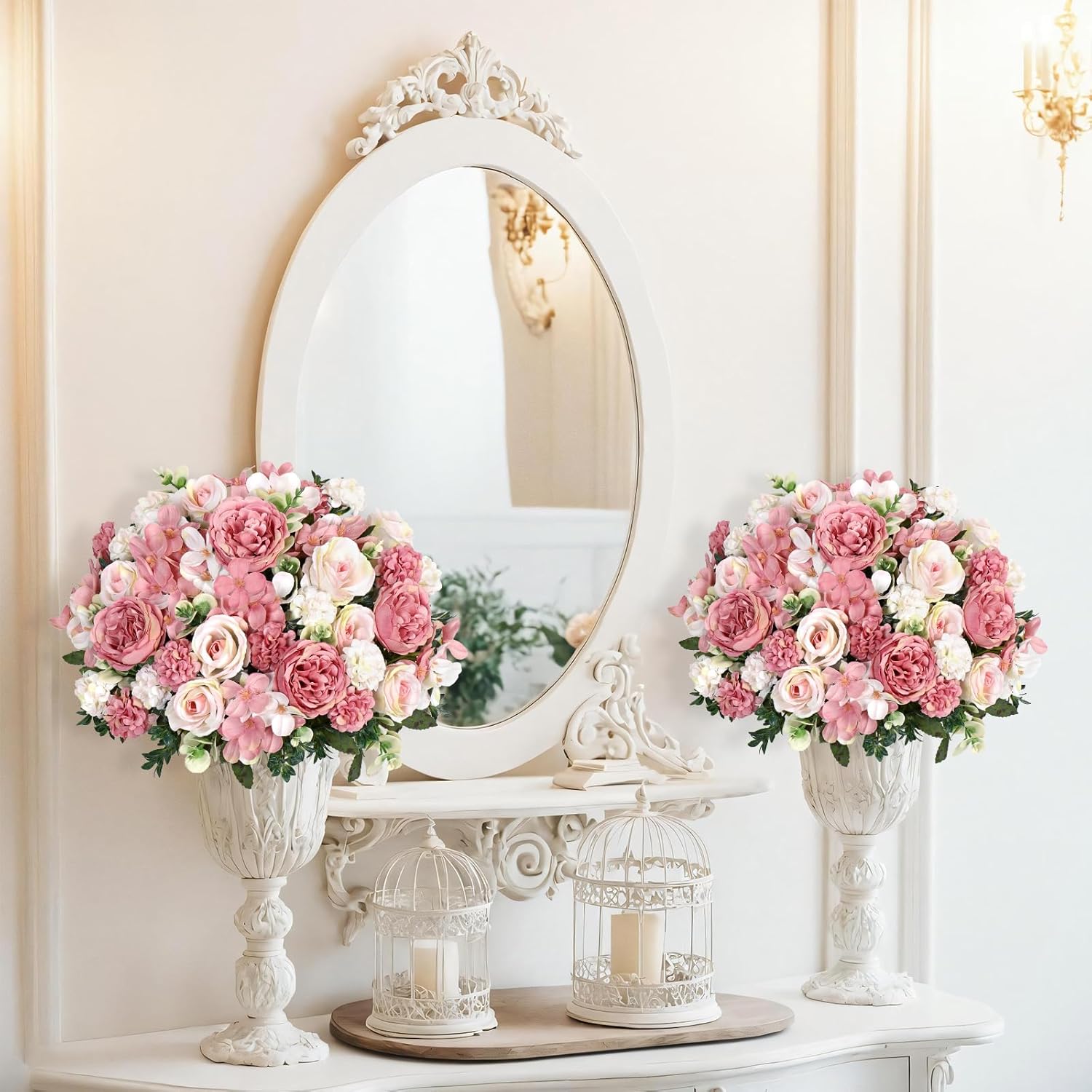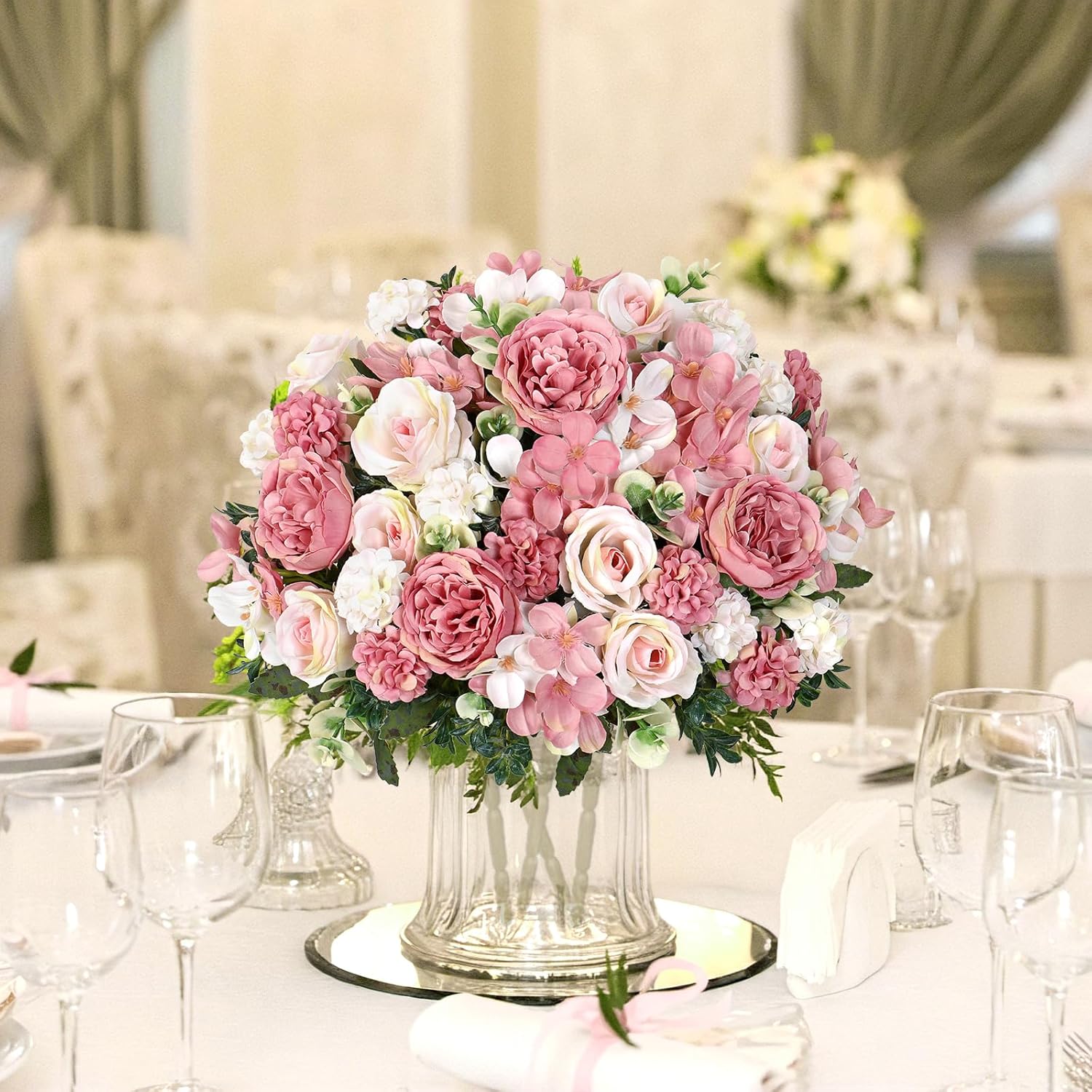 Worked perfectly for decorating kitchen tables at home. Faux silk peony roses look lifelike and elegant. Easy to decorate. Perfect for someone with no previous experience in arranging flowers