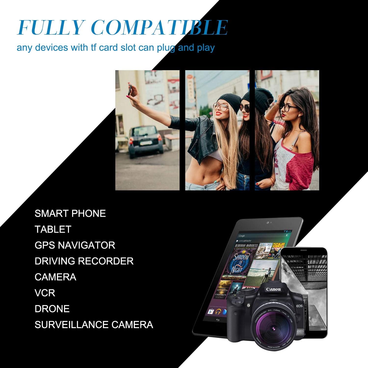 • „БЪРЗ ПРЕНОС НА ДАННИ“: Изпитайте несравними скорости с нашата високоскоростна TF карта, способна да прехвърля снимки, видеоклипове, файлове и данни със скорости до 80 Mbps. (Моля, обърнете внимание: скоростите на прехвърляне може да варират в зависимост от капацитета на картата, тестовия хардуер, софтуера и операционната система.)