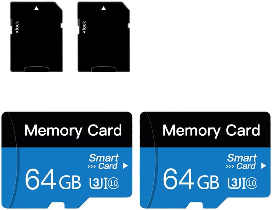 2 x 64 GB Micro Memory Card (с адаптер), Memory TF Card Class 10, Mini Memory Card за камера/смартфон/таблет/дрон (Синя 64 GB*2)