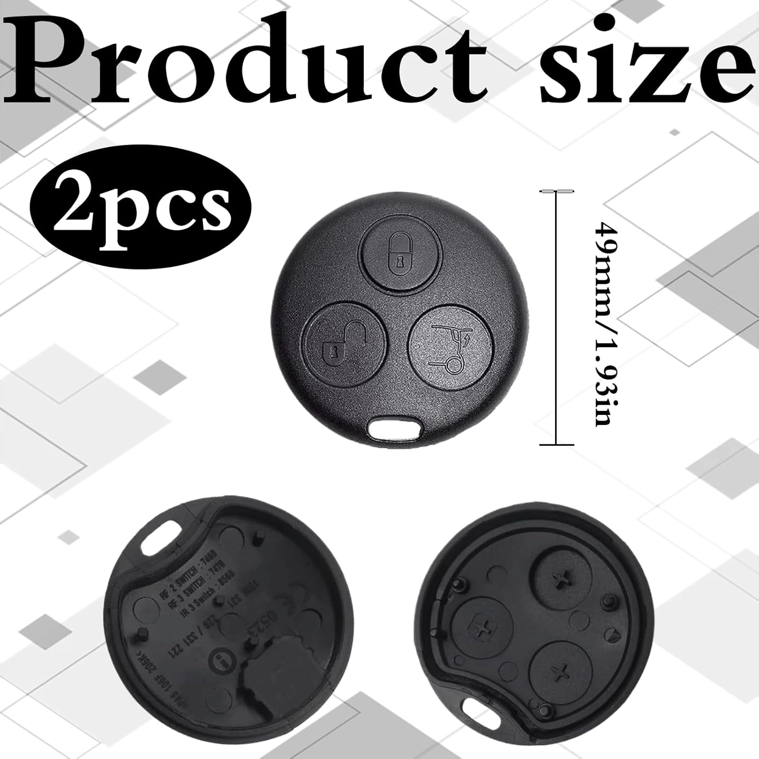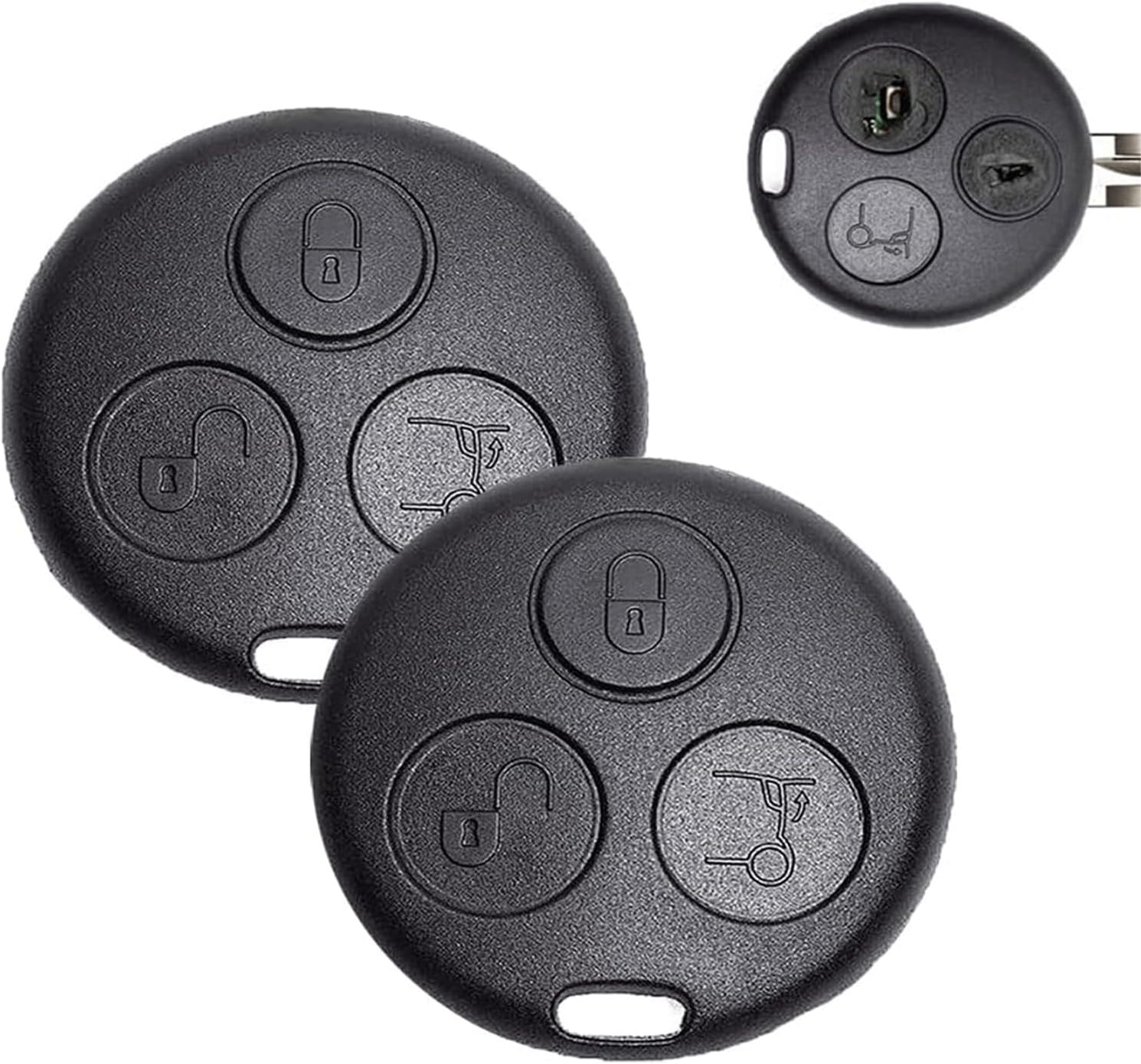 Material: Kunststoff Farbe: Schwarz Abmessungen: 49 x 49 x 49 mm Inhalt des Sets: [2 Stück Autoschlüsseletui Produktbeschreibung:[Kompatibilität] Dieses 3 Tasten Gehäuse Der Fernbedienung Passt Perfekt Zu Verschiedenen Smart-Modellen, Darunter Smart 450 Fortwo, Smart City-Coupé, Smart Brabus Und Smart Cabrio. Bitte Prüfen Sie Vor Dem Kauf, Ob Dein Autoschlüssel Mit Dem Produktfoto Übereinstimmt, Insbesondere In Form, Schlüssellochgröße Und Schlüsselkasteninnenausstattung [Verpackungsinhalt Und Abmessungen]Dieses Smart Schlüssel Set Enthält 2 3-Tasten-Smart-Key-Hüllen. Die Abmessungen Des Autoschlüsseletuis Betragen 49 X 49 X 49 Mm (1,9 X 1,9 X 1,9 Zoll). Bitte Beachten Sie, Dass Ungeschnittene Autoschlüsselblätter Nicht Im Lieferumfang Enthalten Sind [Hochwertiges Material]Dieses Smart Schlüssel Gehäuse Besteht Aus Hochwertigem Abs-Kunststoff Mit Einer Robusten Und Langlebigen Konstruktion, Leicht Zu Drückenden Tasten Und Einer Gut Verarbeiteten Benutzeroberfläche. Bitte Beachten Sie, Dass Es Sich Hierbei Nur Um Das Kunststoffgehäuse Handelt; Setzen Sie Die Interne Elektronik Der Originalfernbedienung In Das Neue Gehäuse Ein [Einfache Installation]Die Installation Dieses Smart Fortwo Autoschlüsselgehäuses Ist Sehr Einfach. Entfernen Sie Einfach Die Internen Elektronischen Komponenten Der Originalfernbedienung, Einschließlich Der Wegfahrsperre Und Der Transponderchips, Und Setzen Sie Sie In Das Neue Gehäuse Ein. Diese Plug-And-Play-Methode Ermöglicht Eine Schnelle Und Einfache Montage Und Ist Somit Perfekt Für Alle, Die Einen Ersatz Benötigen [Perfekter Ersatz]Dieses Smart 450 Zubehör Eignet Sich Ideal Zum Ersetzen Abgenutzter Oder Beschädigter Originalschlüsseletuis Und Verlängert Die Lebensdauer Des Schlüsseletuis Erheblich