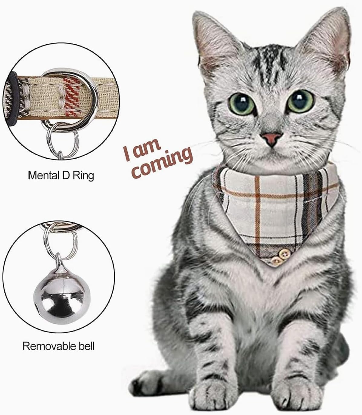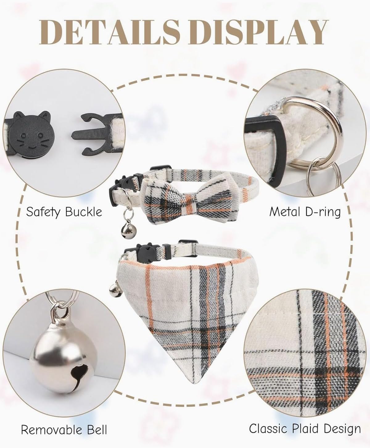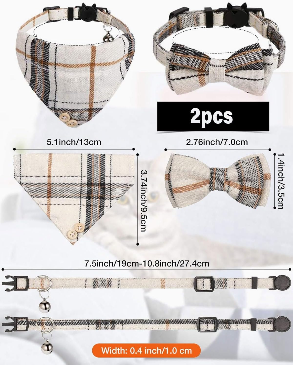 • Модерен дизайн: сладката котешка каишка е снабдена със звънец и бързо освобождаваща се катарама, която е удобна за регулиране и лесна за поставяне и сваляне. Нашийката за кученце е с разкошен кариран мотив, което е модерно и красиво. Това са не само котешки каишки, но и котешки бандани и котешки панделки.