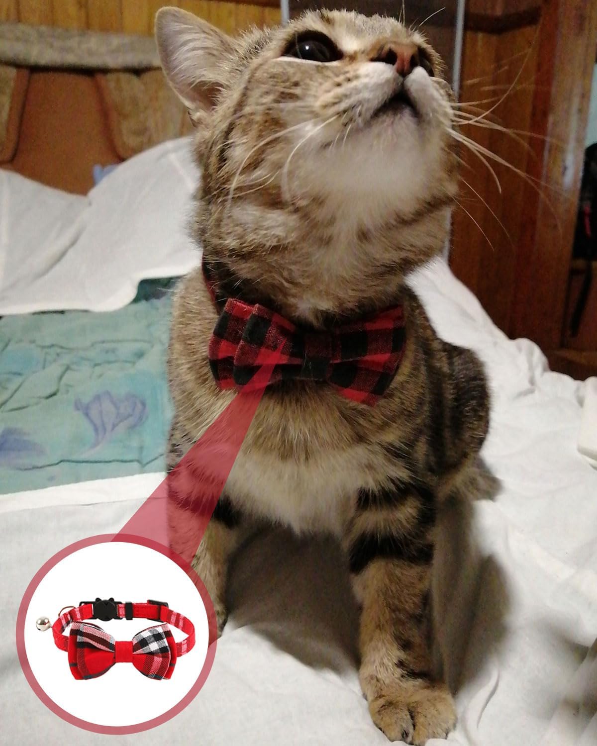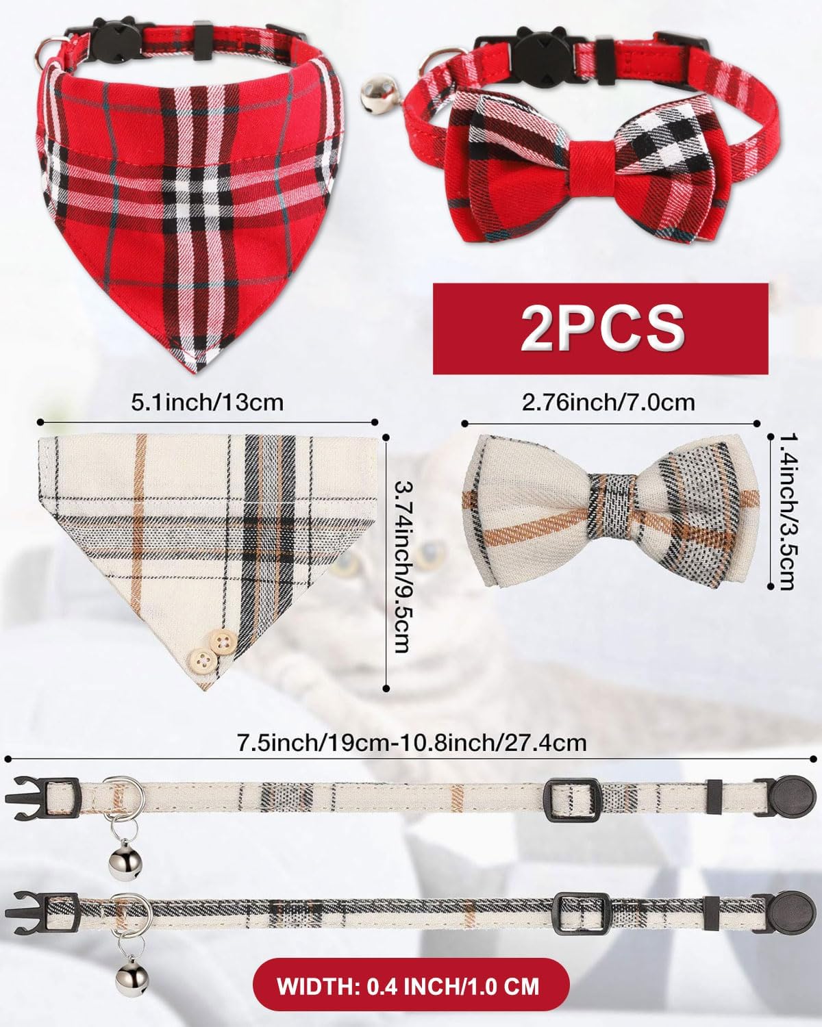 2 x Нашийници за котки с камбанки, сваляща се бандана за папионка, Нашийник за котенца, Бандана за котки и кучета, Нашийник за котки с камбанка, Карирани Нашийници за котки с панделка, Червени