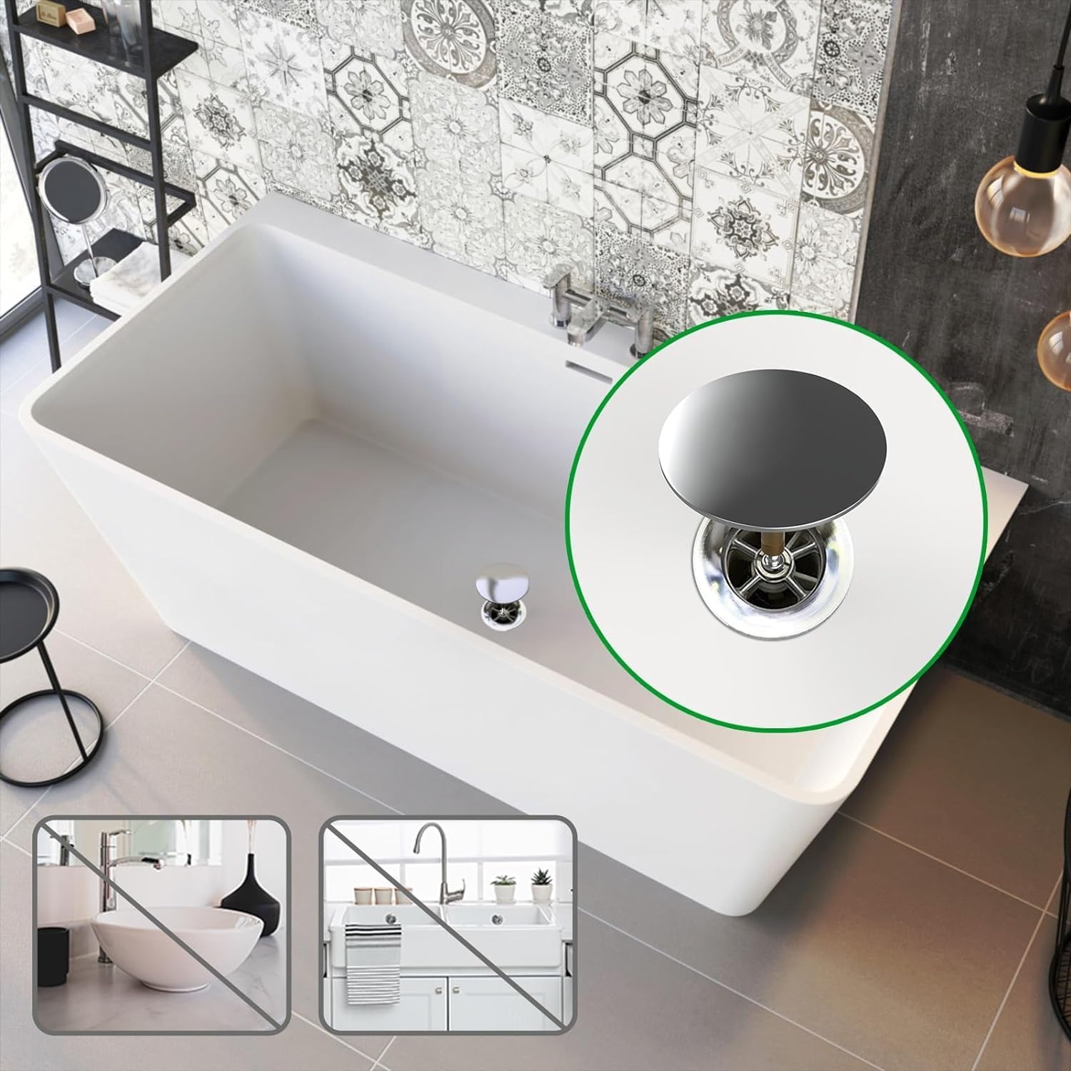 2 x Универсален тапа за вана с диаметър 72 мм, първокласен месинг с двойно уплътнение, устойчив на ръжда, аксесоари за баня