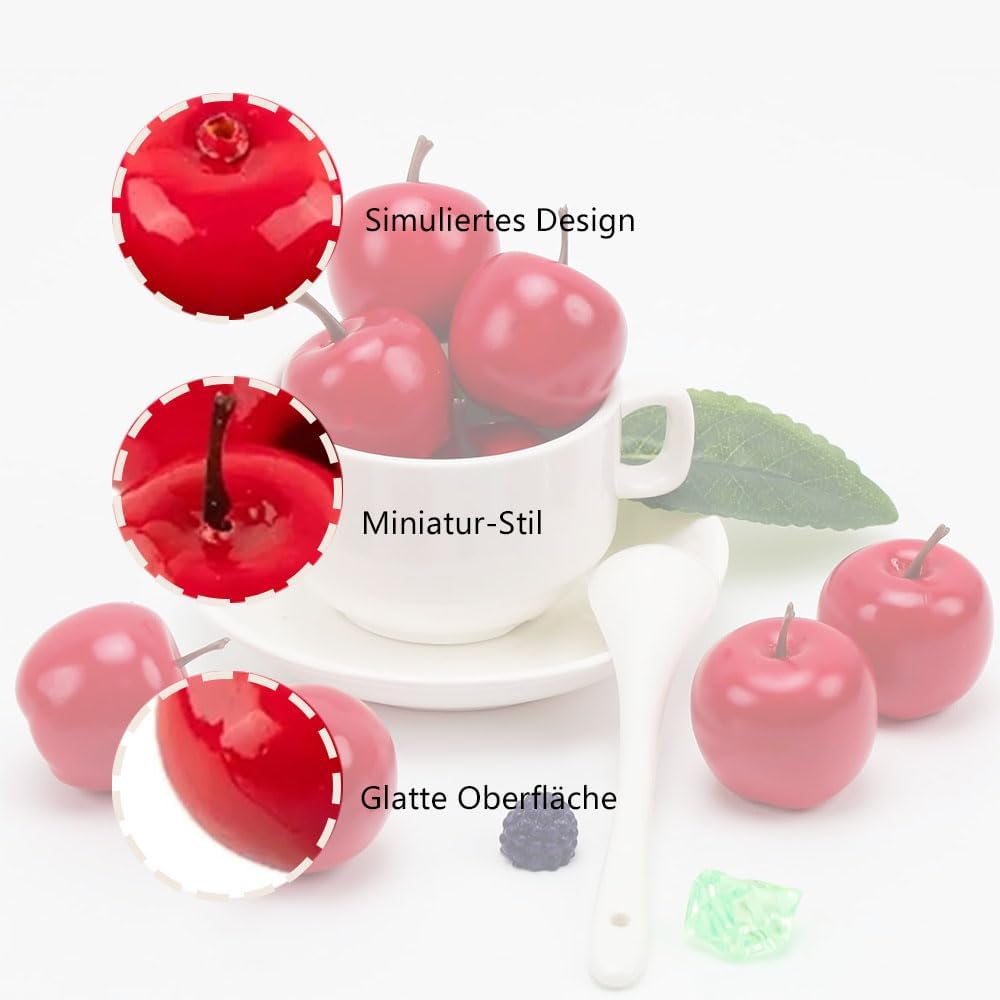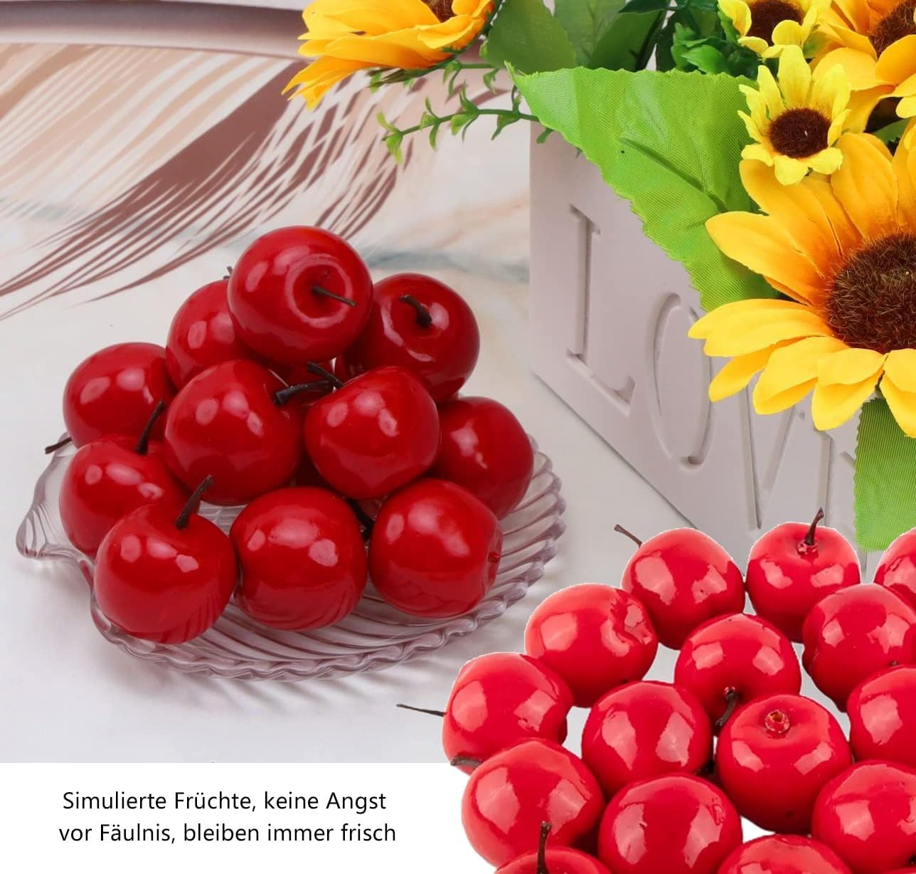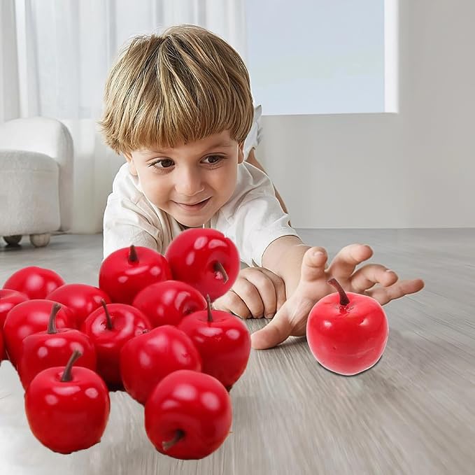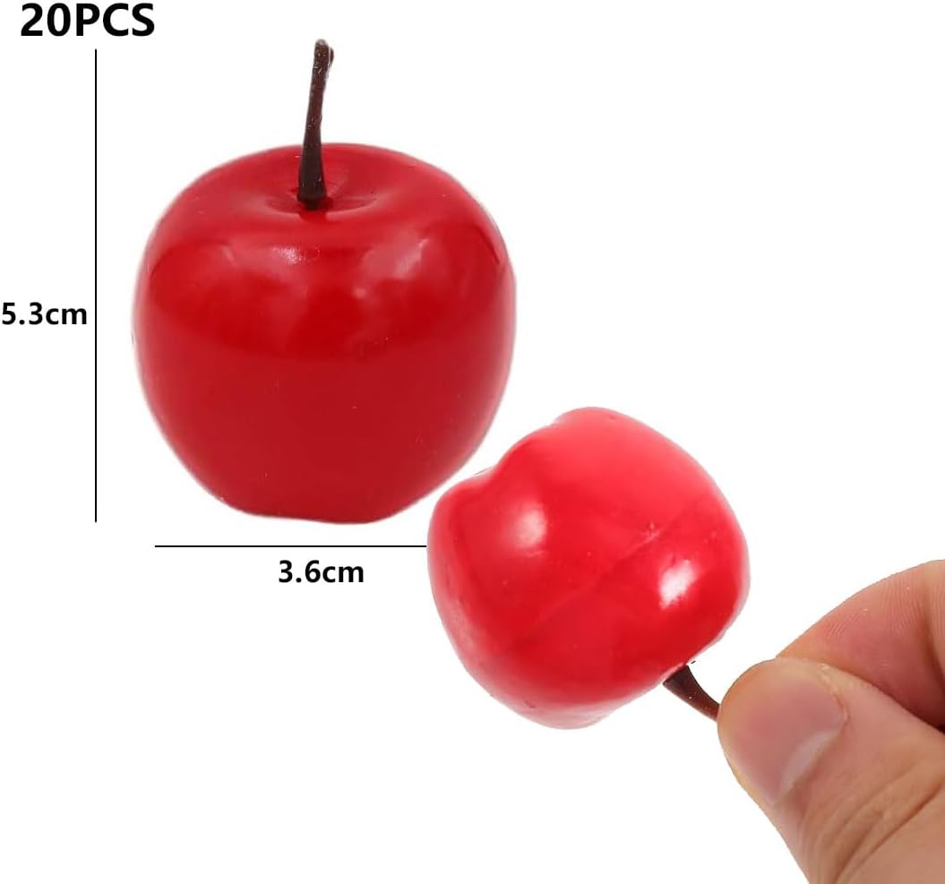 • Изкуствени червени ябълки: пакетът включва 20 броя мини червени симулационни фалшиви ябълки, много реалистични с ярък червен цвят, реалистични ефекти, достатъчно количество, за да отговори на вашите нужди от парти декорация в ежедневието