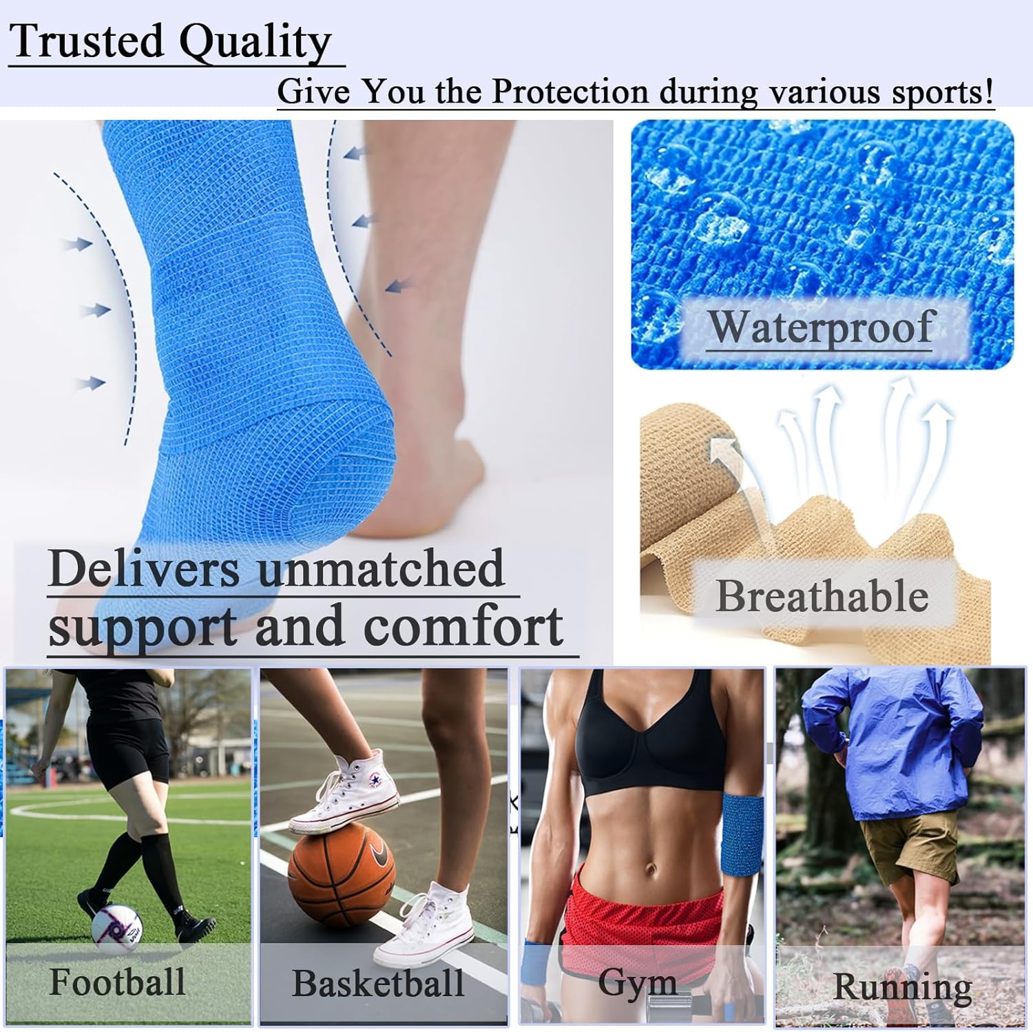 • 【ВИСОКА ЕЛАСТИЧНОСТ】Самозалепваща превръзка с над 200% еластичност. Тези самозалепващи превръзки предлагат регулируема сила на затягане и отлична опора, което ви позволява да се предпазите по-добре след тренировъчни наранявания или по време на тренировка.