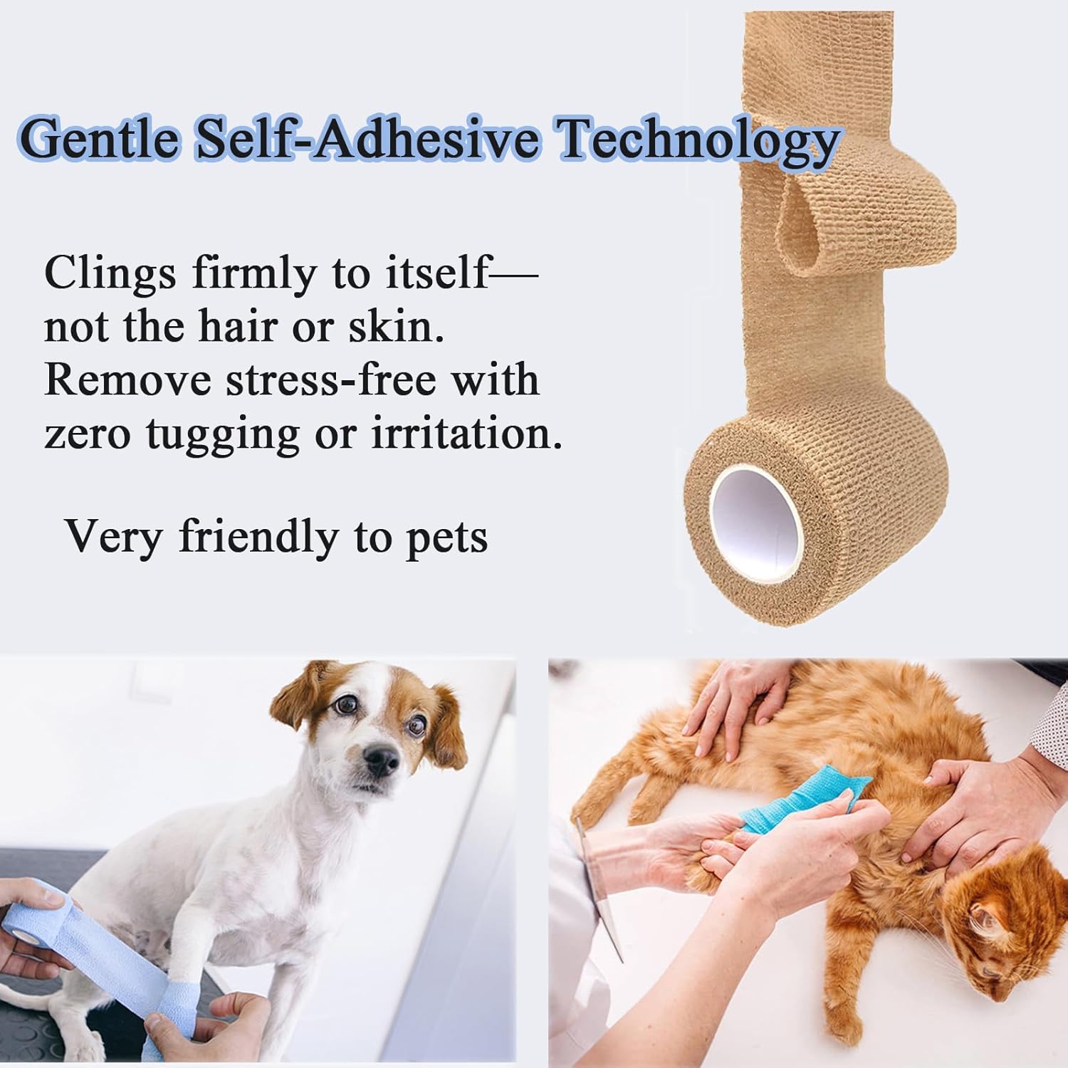 • 【Лесна за употреба】Предназначена за обвиване на китките, глезените и коленете. Самозалепващата се превръзка не използва лепило; тя се залепва сама за себе си, но не и за дрехи, кожа или коса. Подходяща е и за домашни любимци като коне, кучета, котки и др.
