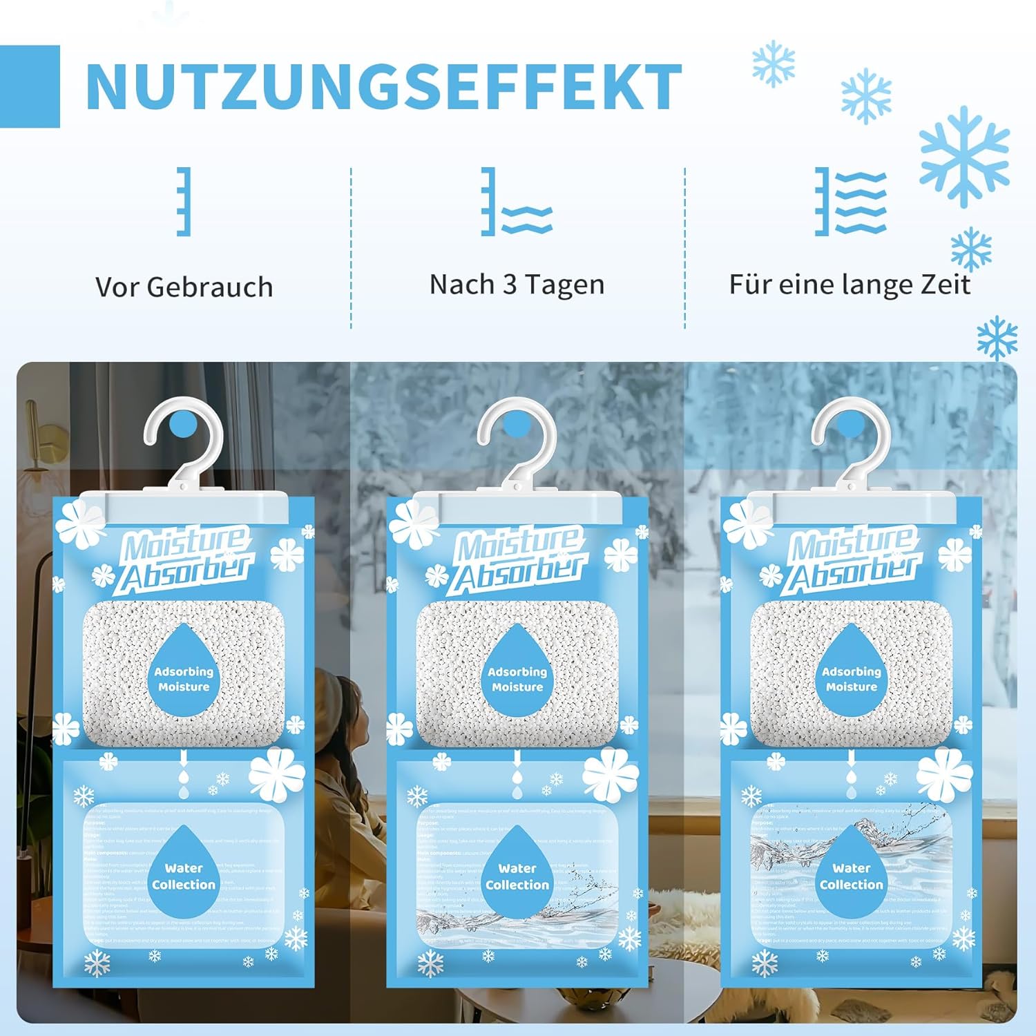 • Висящ влагоабсорбатор: по-добър от конвенционалния шкаф за влагоабсорбатор, този комплект висящи влагоабсорбатори е оборудван с куки за окачване за гъвкава употреба у дома и в затворени пространства като гардероб, шкаф, баня, кухня, перално помещение, кемпер, лодка и мазе. Извадете го и го окачете където пожелаете, след което той ще започне да работи за суха и приятна атмосфера.